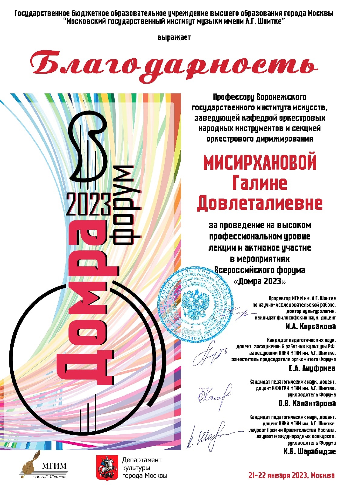 С 21 по 22 января в МГИМ им. А.Г. Шнитке прошел Всероссийский форум «ДОМРА 2023», где 13 спикеров представляли свои уникальные разработки и эффективные решения, актуальные для педагогов и исполнителей любого уровня подготовки. Были освещены темы обновления репертуара и алгоритмы совершенствования исполнительского мастерства домриста.