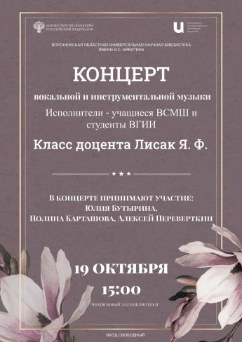 Концерт класса доцента Лисак Я.Ф. в библиотеке имени И.С. Никитина