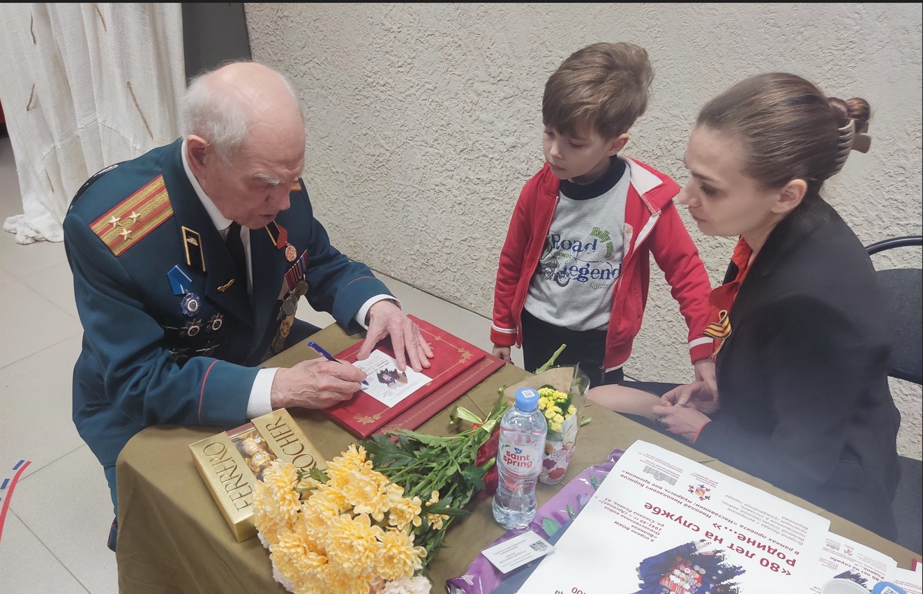 Во время встречи все желающие могли задавать интересующие их вопросы, сказать слова благодарности и просто обнять ветерана.