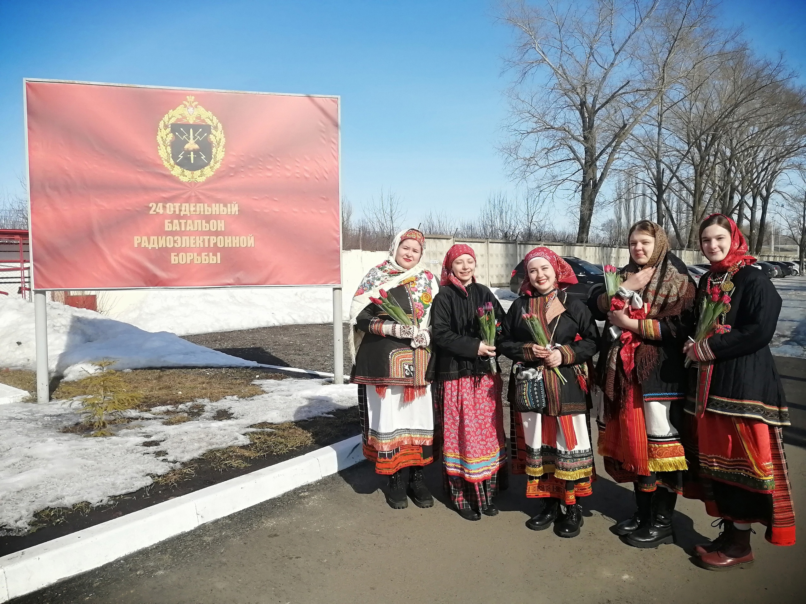 Волонтеры штаба #МЫВМЕСТЕ ВГИИ (студенты кафедры этномузыкологии ) провели концерт и игровую программу для солдат срочной службы воинской части №75551 Семилукского района. Наши волонтеры накрыли стол из привезенных угощений и продолжили общение за чаепитием. Наши прекрасные девушки рассказали о старинных обычаях, народных праздниках. Ребята интересовались элементами традиционного костюма Воронежской области и профессией "этномузыколог". И это уже вторая поездка в этом году: первая состоялась 8 марта 2024 года, а вторая в прошедшие выходные - 31 марта 2024 года.