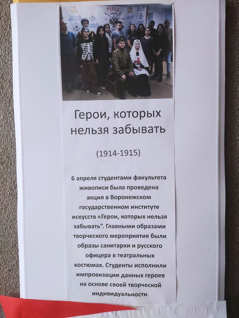 В прошлые выходные на факультете живописи ВГИИ состоялся пленэр, посвященный Первой Мировой войне. Он стал частью цикла мероприятий проекта «Герои, которых нельзя забывать».