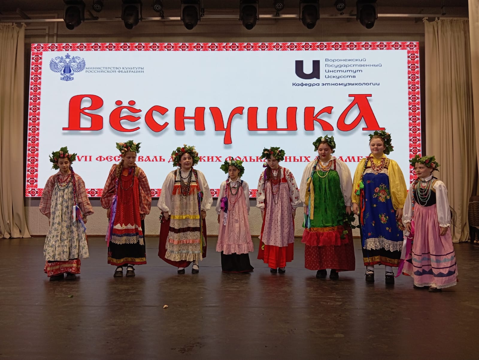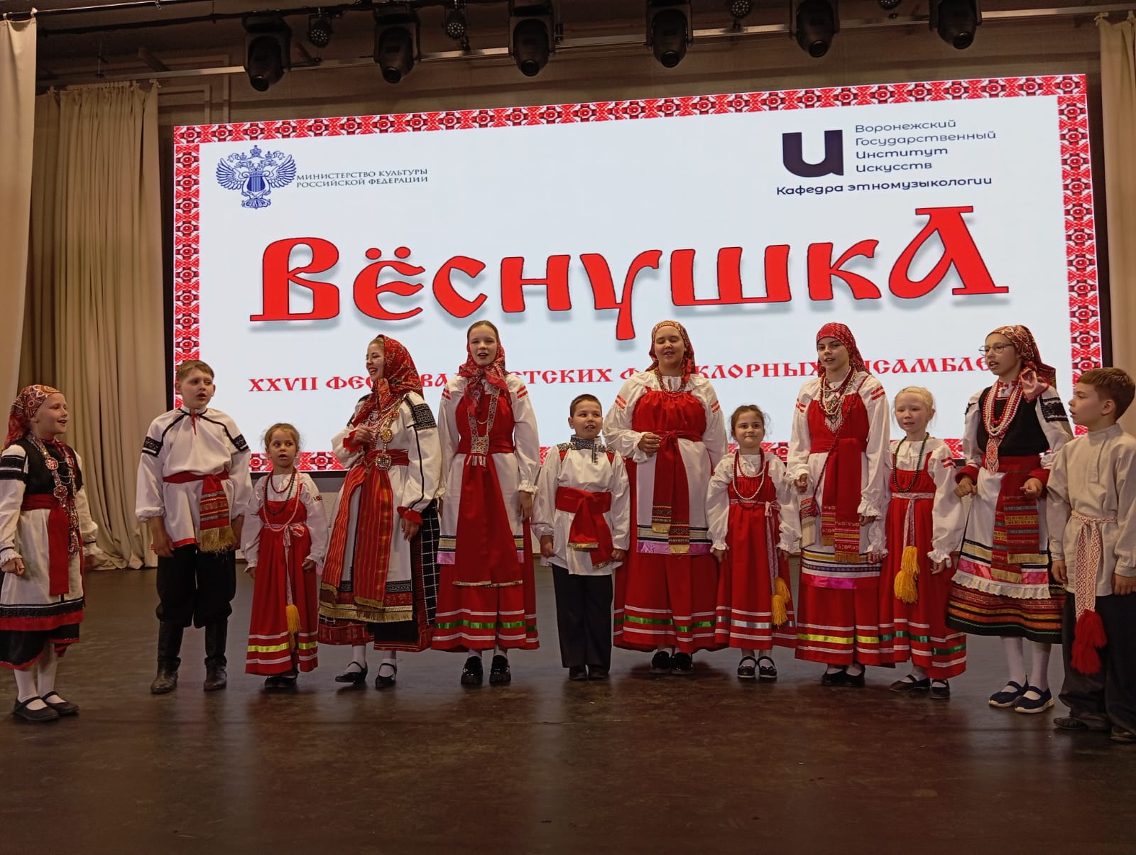 26 мая 2024 года на сцене Большого зала Воронежского государственного института искусств состоялся XXVII фестиваль детских фольклорных ансамблей «Вёснушка», организованный кафедрой этномузыкологии. За эти годы он постоянно расширяет охват участвующих коллективов и зрительской аудитории.