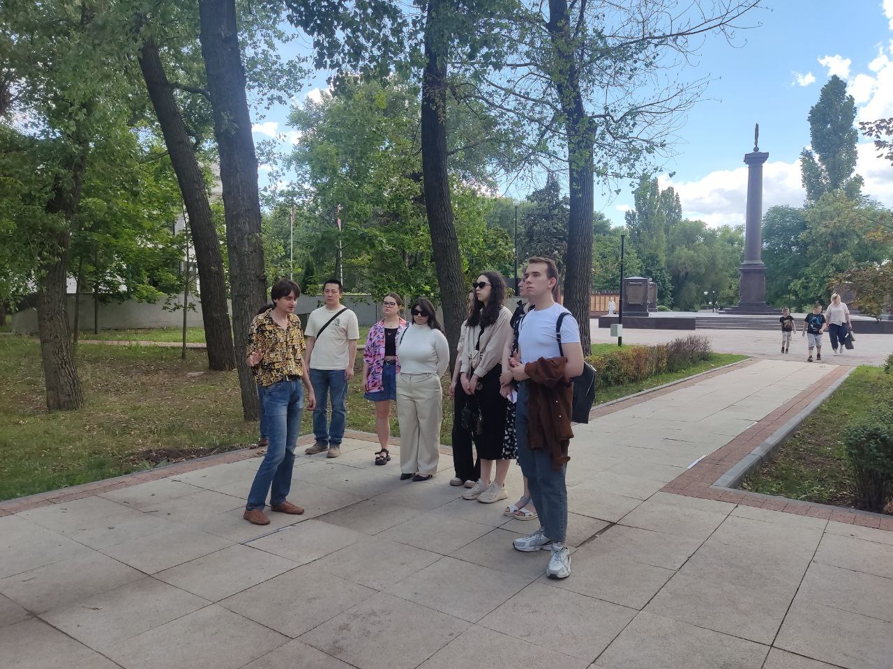 Студенты ВГИИ посетили вчера музей-диораму в Воронеже. Они совершили экскурсию по экспозициям, размещенным как внутри, так и снаружи музея. На территории перед музеем можно увидеть военную технику времен Великой Отечественной войны, а также братскую могилу №6 с вечным огнем. Внутри музея представлена коллекция орденов, современное снаряжение, используемое в ходе СВО, интерактивная карта и макет Воронежа времен войны.
