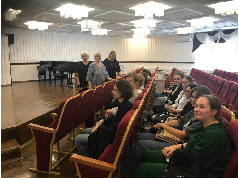 10 сентября в Малом зале ВГИИ преподаватели кафедры камерного ансамбля и концертмейстерского мастерства Е.В.Корсак и М.И.Агибалова провели встречу-беседу со студентами по теме «Организация занятий в классе камерного ансамбля». Были обсуждены актуальные проблемы организации занятий, самостоятельных репетиций, а также этические и психологические аспекты взаимодействия ансамблистов в учебно-творческом процессе