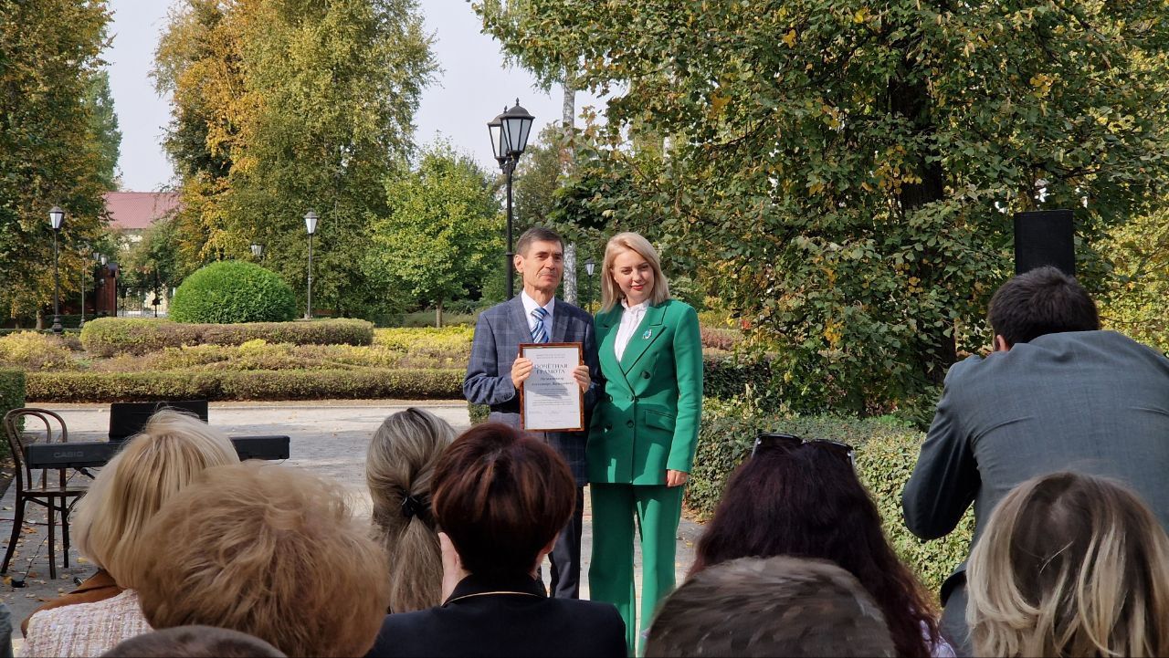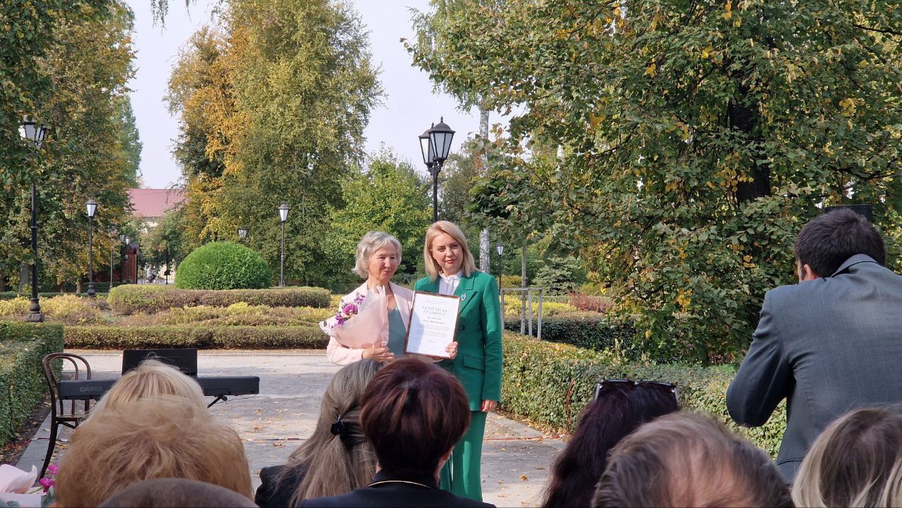 4 октября в парке Дворца Ольденбургских прошло торжественное награждение педагогов почетными грамотами и благодарностями Министерства культуры Воронежской области, приуроченное ко Дню учителя. Среди награжденных — педагоги ВГИИ: Нина Вадимовна Белянская, Александра Викторовна Бычкова, Елена Семеновна Лизунова, Александр Васильевич Мозалевский, Екатерина Павловна Прокопьева, Зоя Дмитриевна Солодилова, Юрий Васильевич Утенков. Поздравляем наших дорогих учителей!