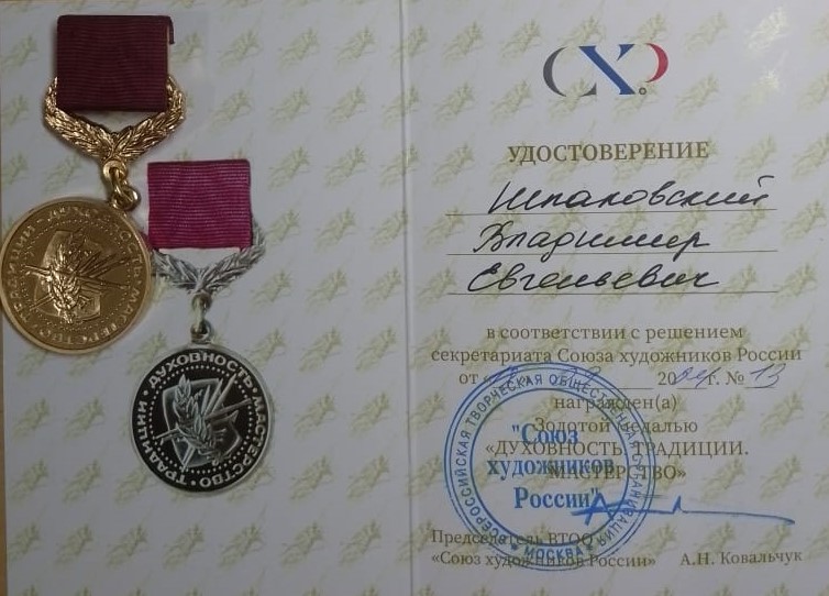 На этом мероприятии Владимир Евгеньевич был удостоен награды - ему вручили золотую медаль Союза художников России "Традиции, духовность, мастерство". Поздравляем с высокой наградой!