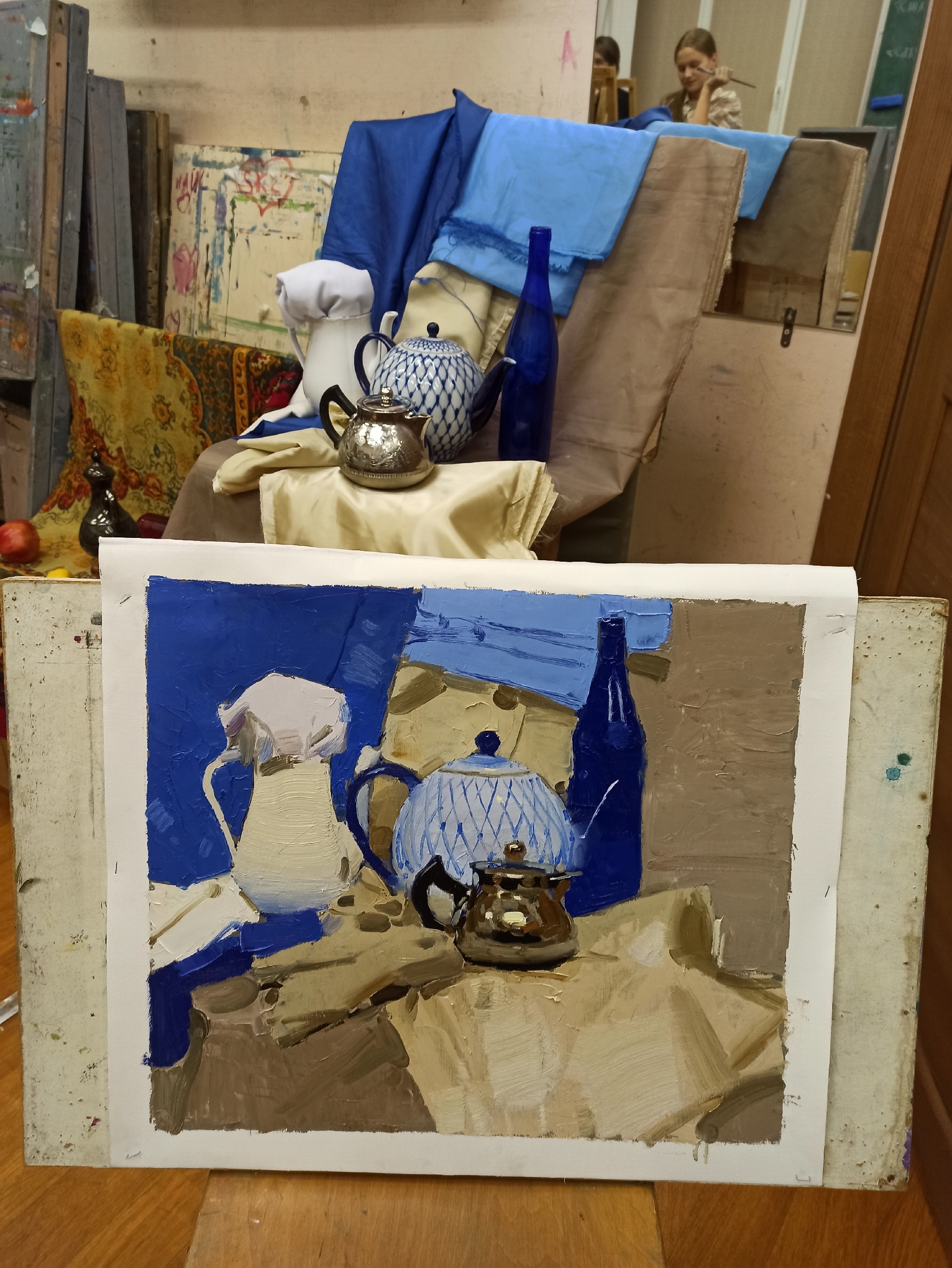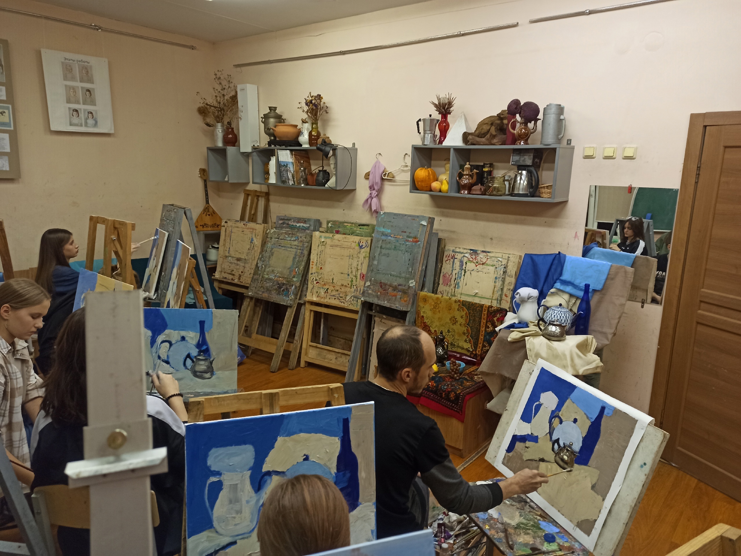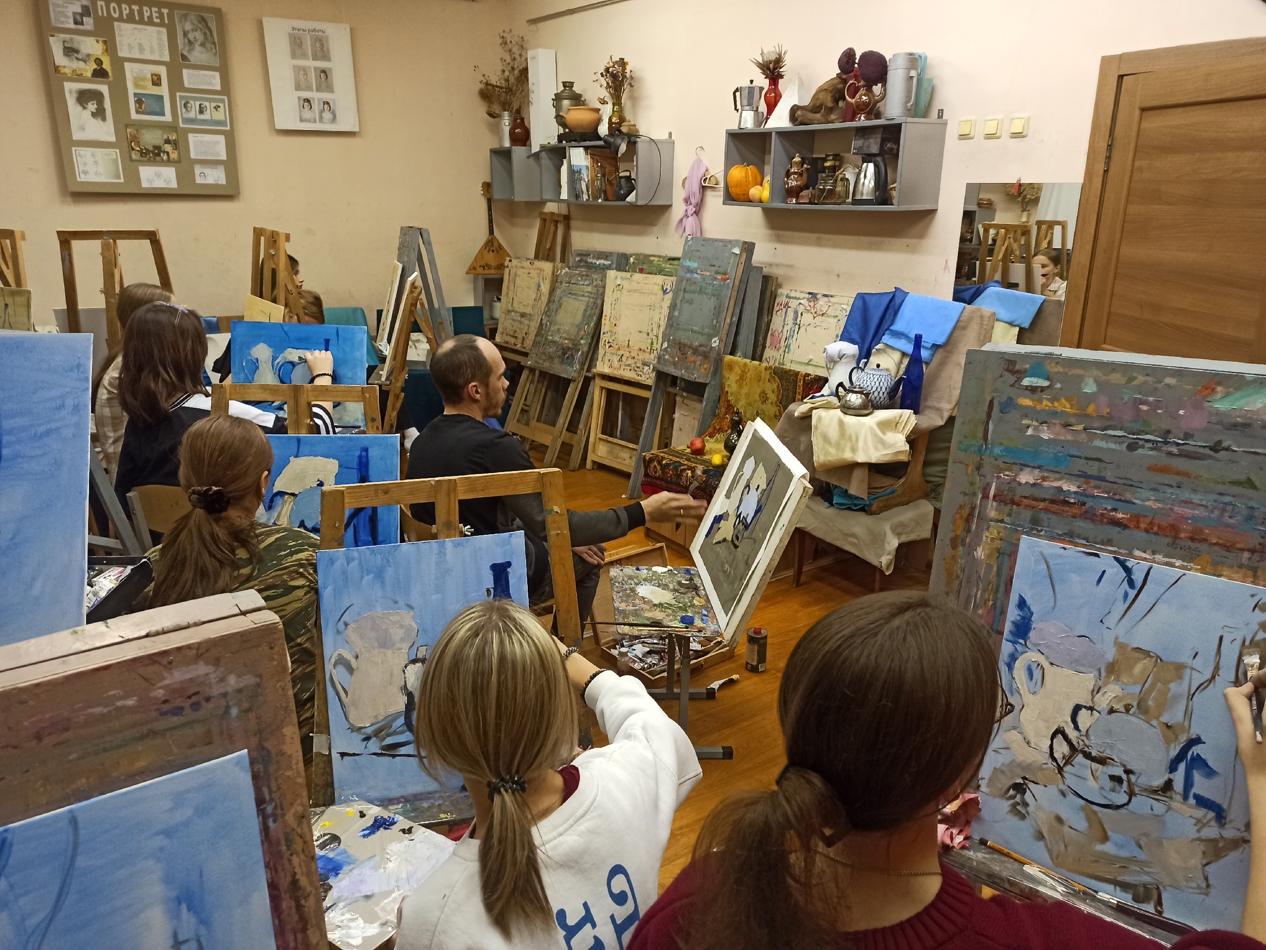 21.11.2024 16 ноября, декан факультета живописи Воронежского государственного института искусств провел мастер класс по написанию натюрморта для 3-4 классов художественного отделения ДШИ 7