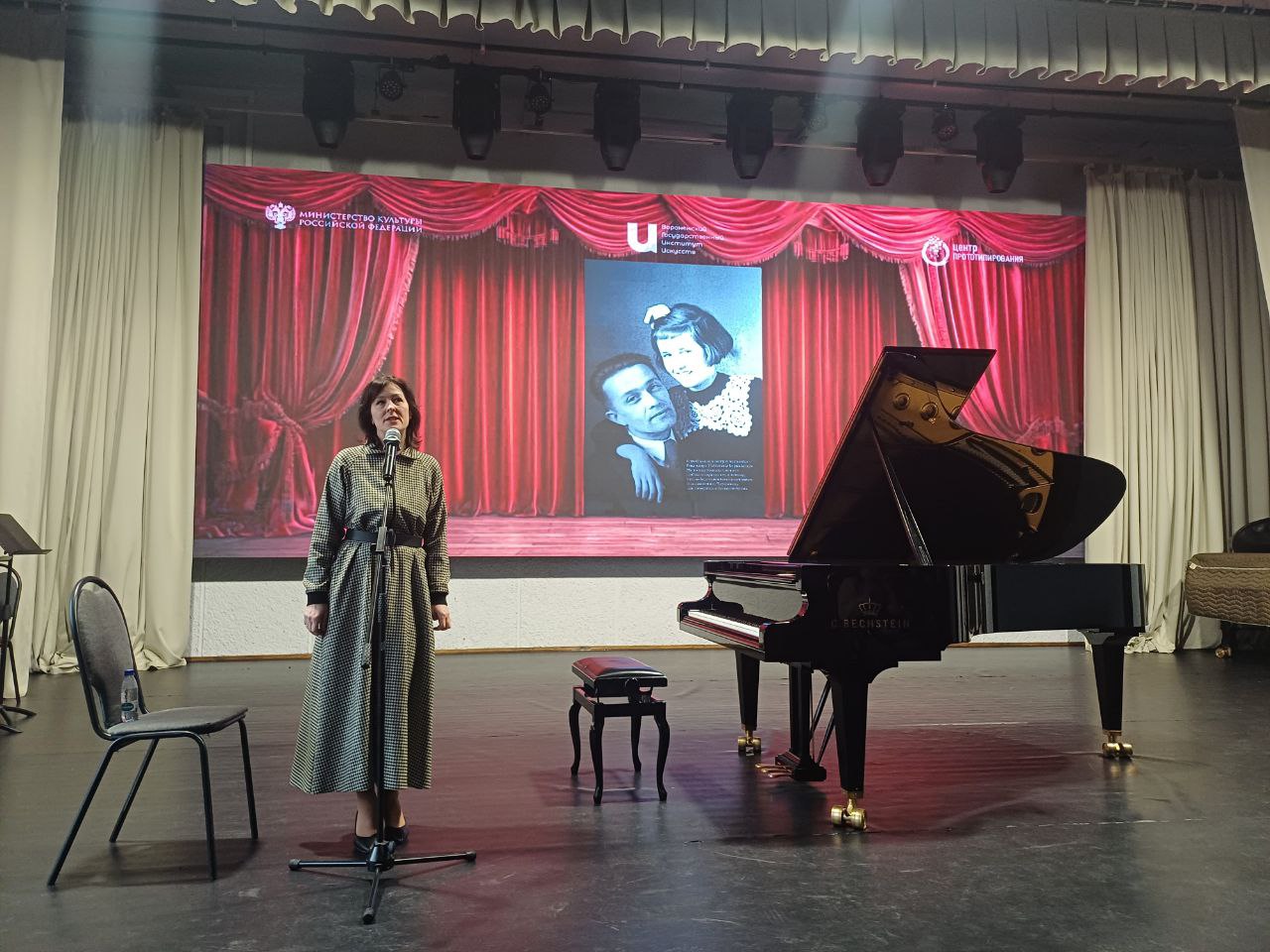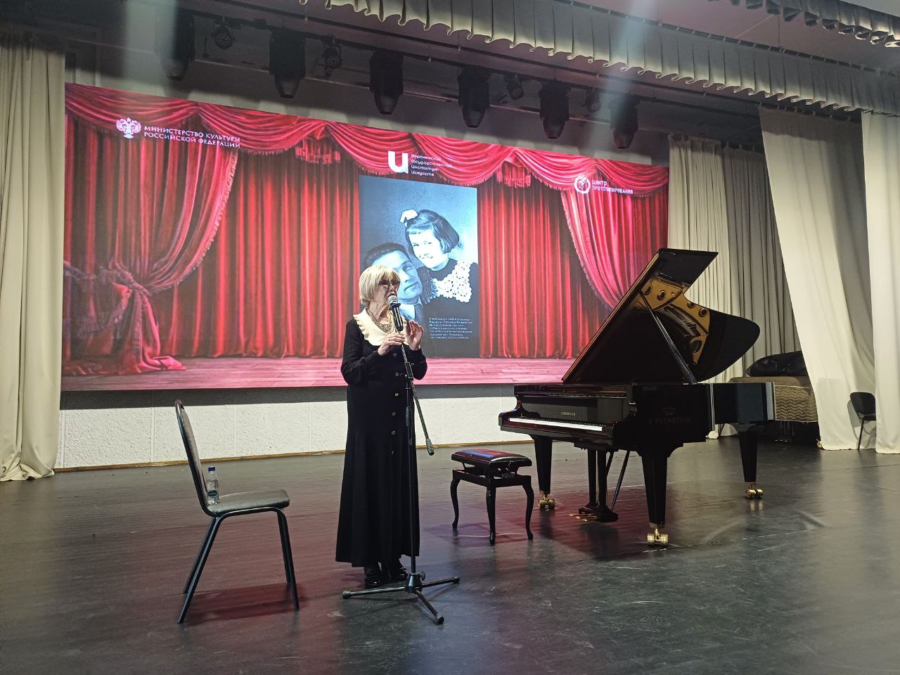 Н.В. Бурмейстер-Чайковская представила присутствующим презентацию с фрагментами из балетов, поставленных В.П. Бурмейстером: «Лола», «Штраусиана», «Лебединое озеро» и «Снегурочка», а также исполнила Прелюдию до-диез минор op.3, №2 С. Рахманинова.