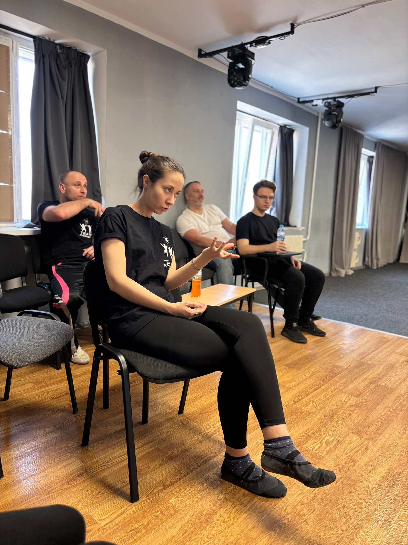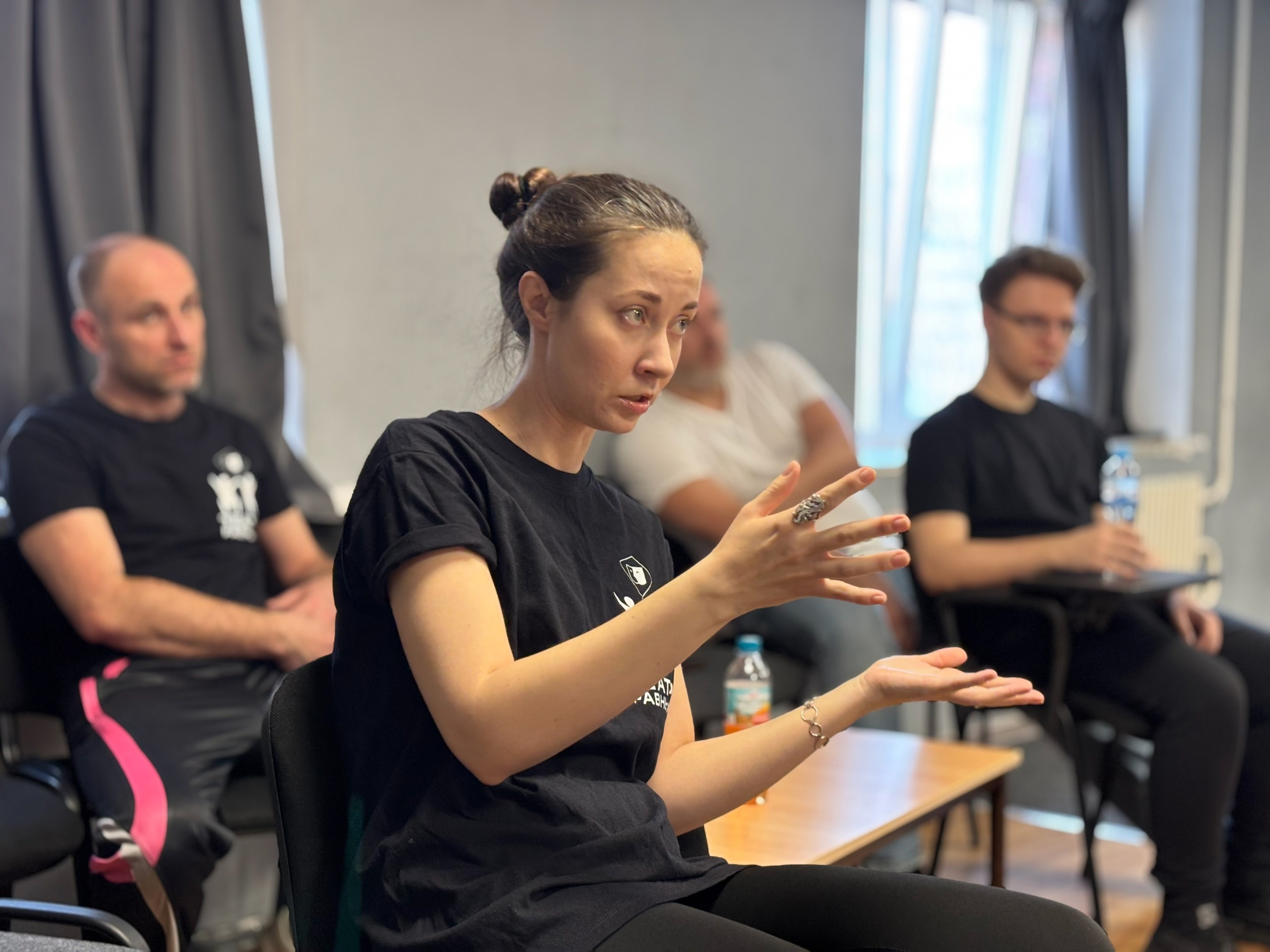 Нина Яновская (педагог по сценической речи ВГИИ) провела мастер-класс «Сценический диалог» - практика взаимодействия с партнером на площадке, сила и энергия слова.