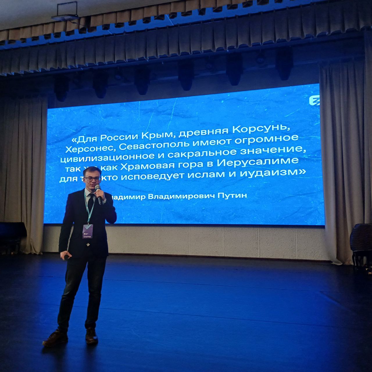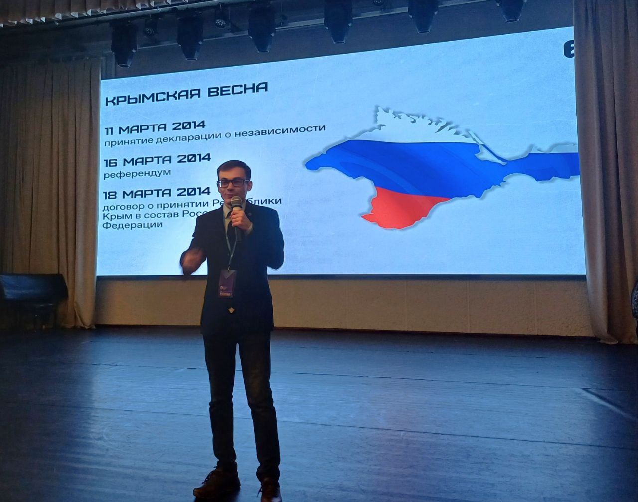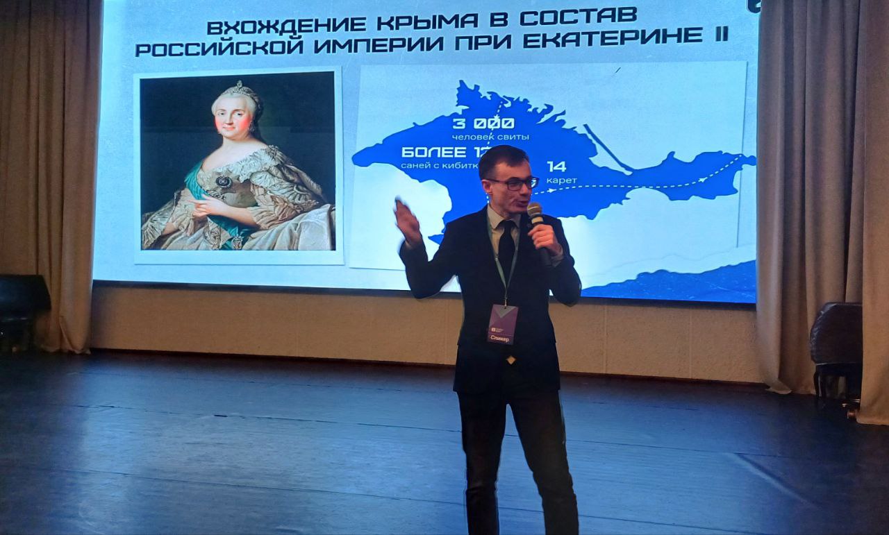 С лекцией и презентацией об истории Крымского полуострова с древнейших времен до наших дней выступил кандидат исторических наук, лектор Воронежского филиала Российского общества "Знание" П.В. Дмитриев. Присутствующие студенты и преподаватели узнали о том, какие народности населяли Крым, под влиянием каких государств находился полуостров в различные исторические периоды, и почему он всегда находился в эпицентре важных политических событий.