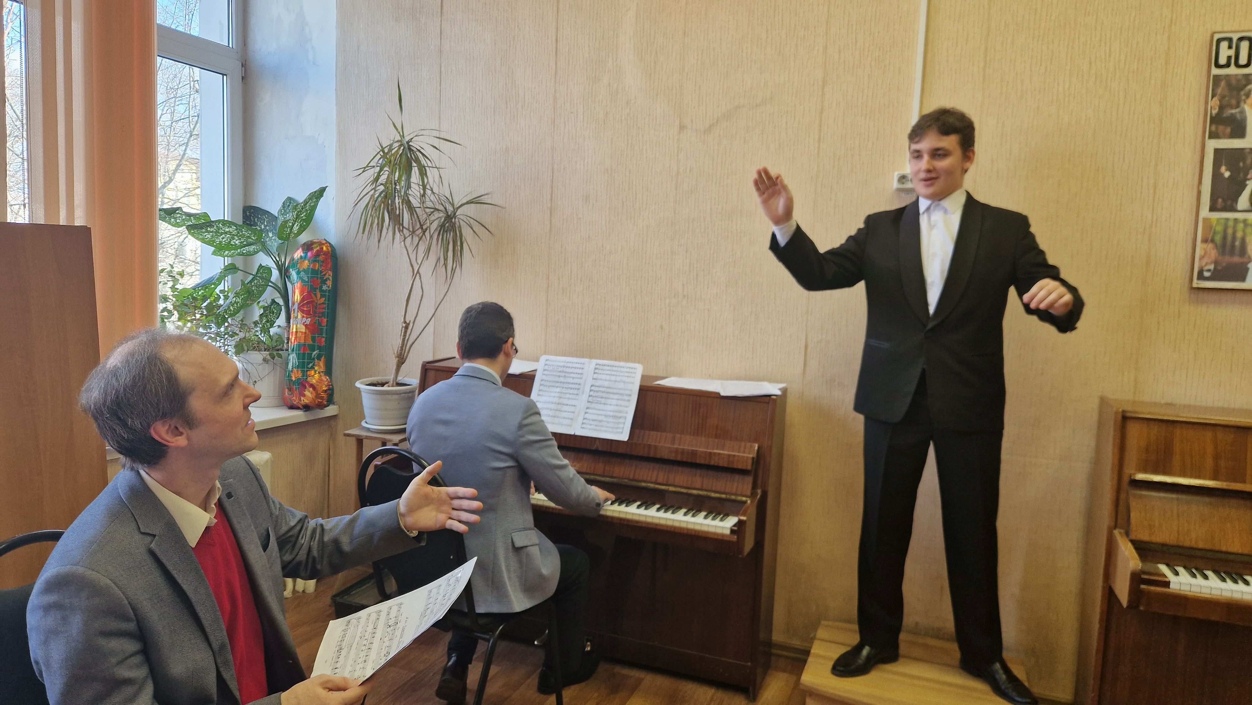 20 марта состоялся Выездной день открытых дверей ВГИИ в Борисоглебском музыкальном училище. Проректор по научной и творческой работе О. В. Девуцкий рассказал студентам о важности получения высшего образования, об особенностях приема в 2025 году, педагоги ВГИИ О. А. Калашникова, Ю. В. Брусенцев, А. В. Дубовик, В. В. Калашников и О. В. Девуцкий провели профориентационные встречи, мастер-классы и консультации по фортепиано, оркестровым народным инструментам, хоровому дирижированию для учащихся музыкального училища и детских школ искусств города Борисоглебска, познакомились с достижениями борисоглебских педагогов и учащихся.