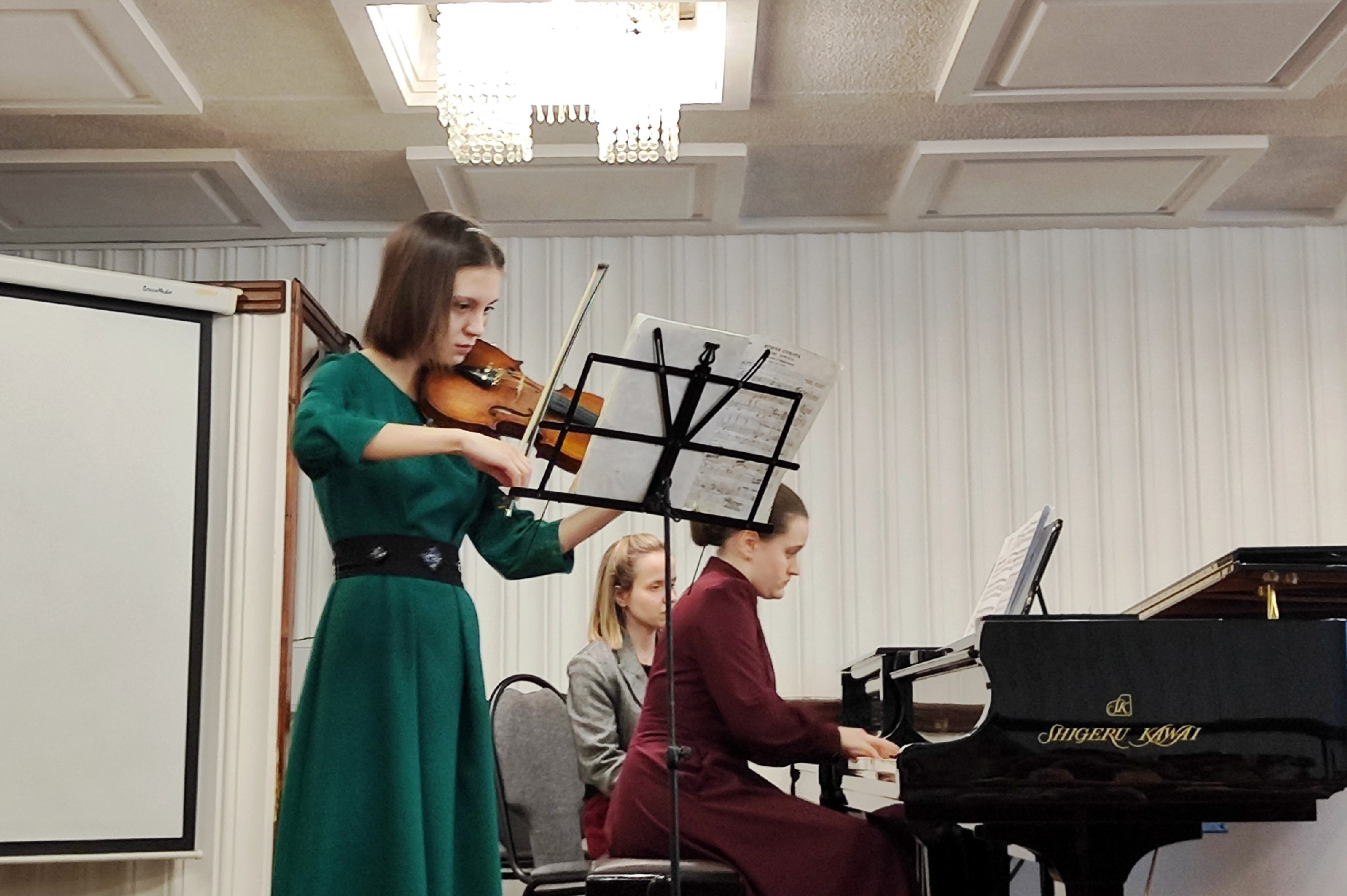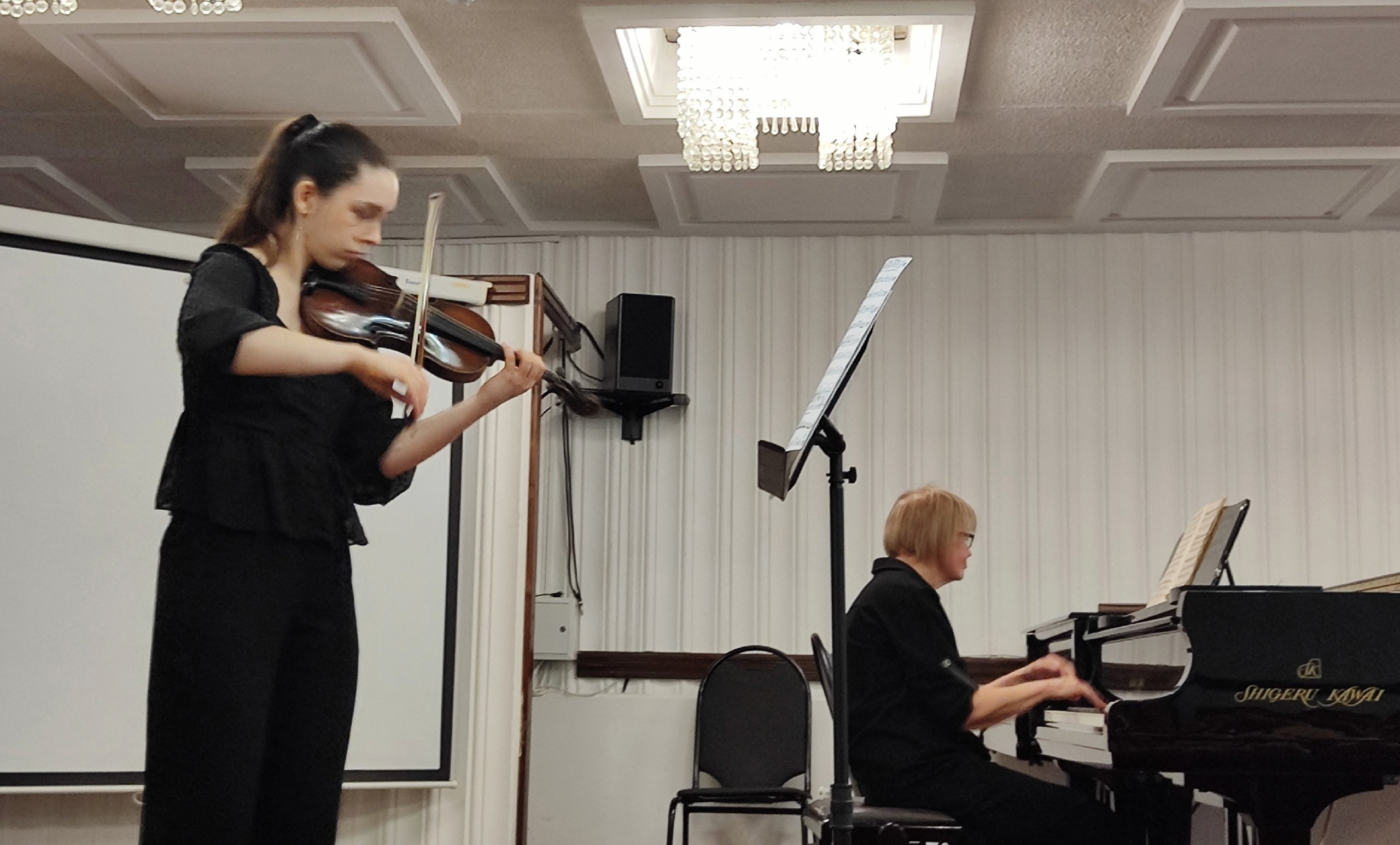 Завершился вечер музыки Эшпая Вторым скрипичным концертом, посвященным памяти его учителя, Н.Я. Мясковского - в замечательном исполнении Марии Воложаниной и Л.Н. Цекаловой.