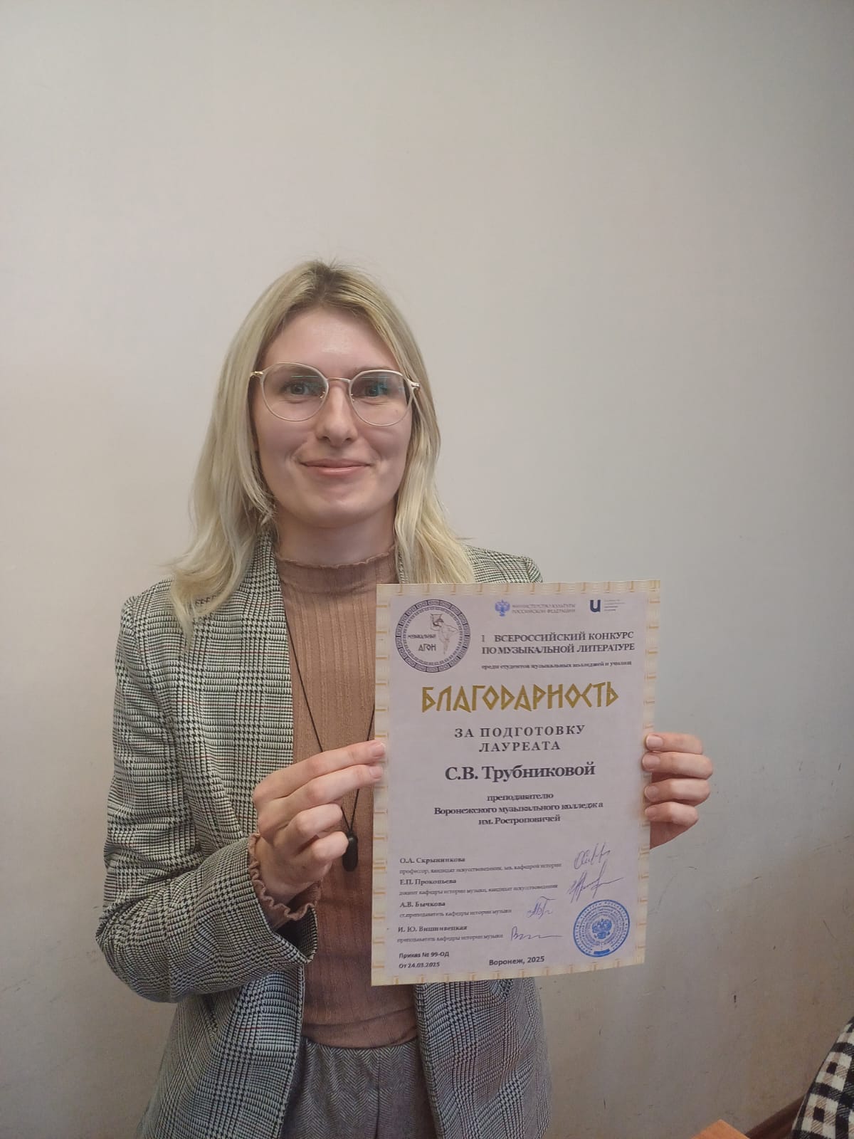 Гран-При – Мочалина Маргарита (Воронежский музыкальный колледж им.Ростроповичей, отделение теории музыки),