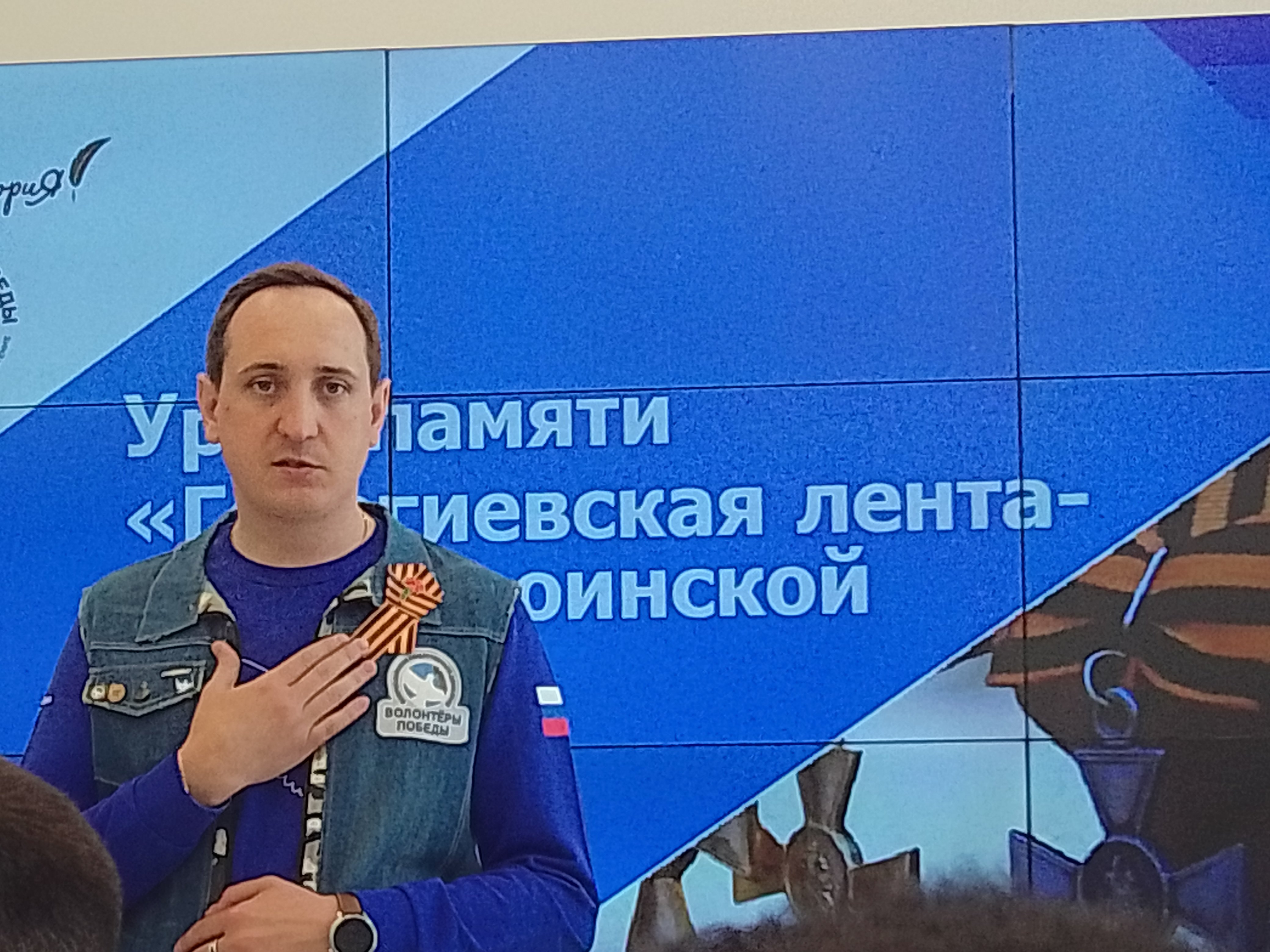 Далее присутствующие прослушали небольшую лекцию и посмотрели презентацию о Георгиевской ленте, ведущей свою историю от ордена Святого Георгия Победоносца, учреждённого 26 ноября 1769 года императрицей Екатериной II. В наши дни это значимый символ, объединяющий поколения защитников нашего Отечества как прошлого, так и настоящего.