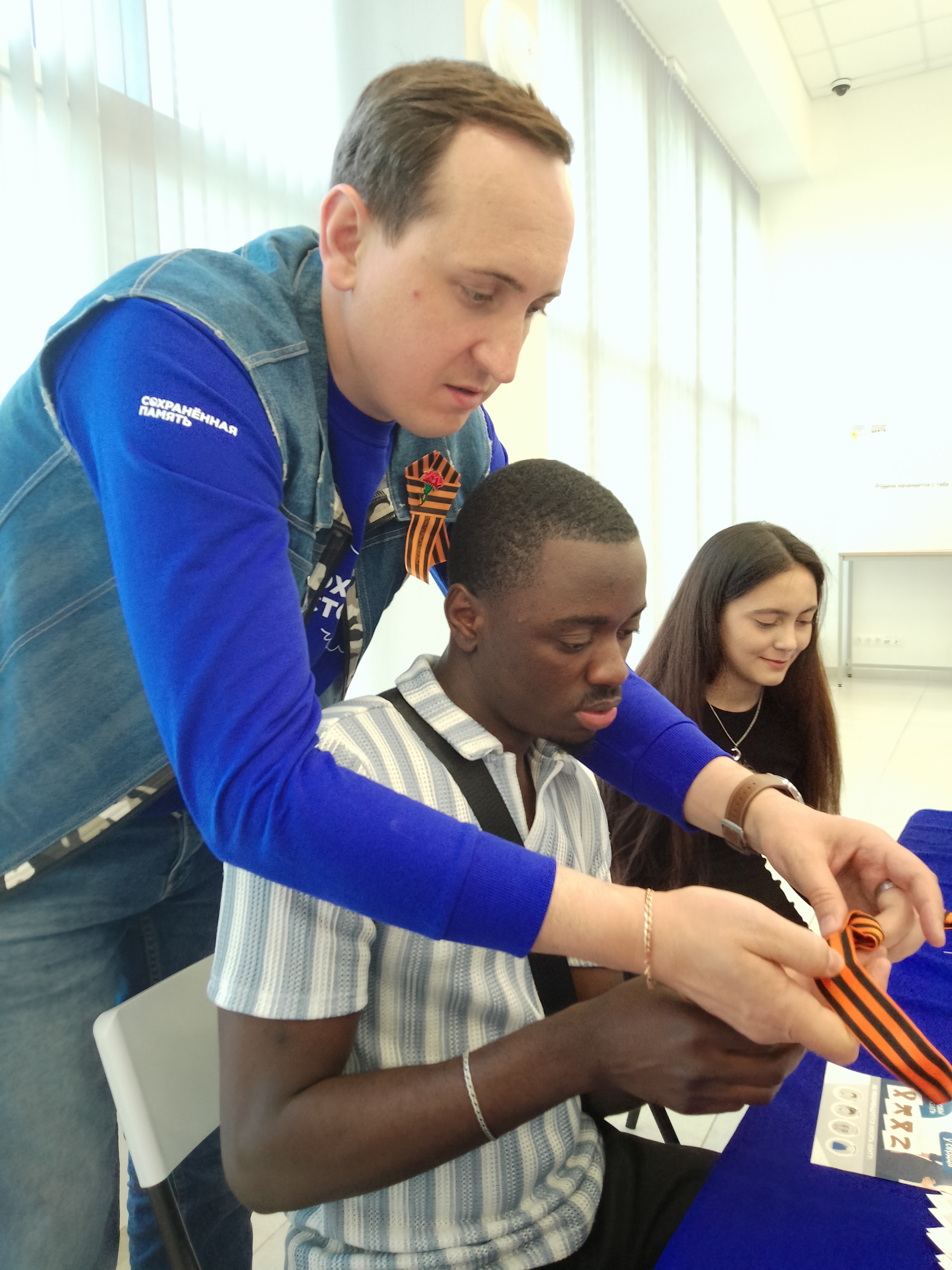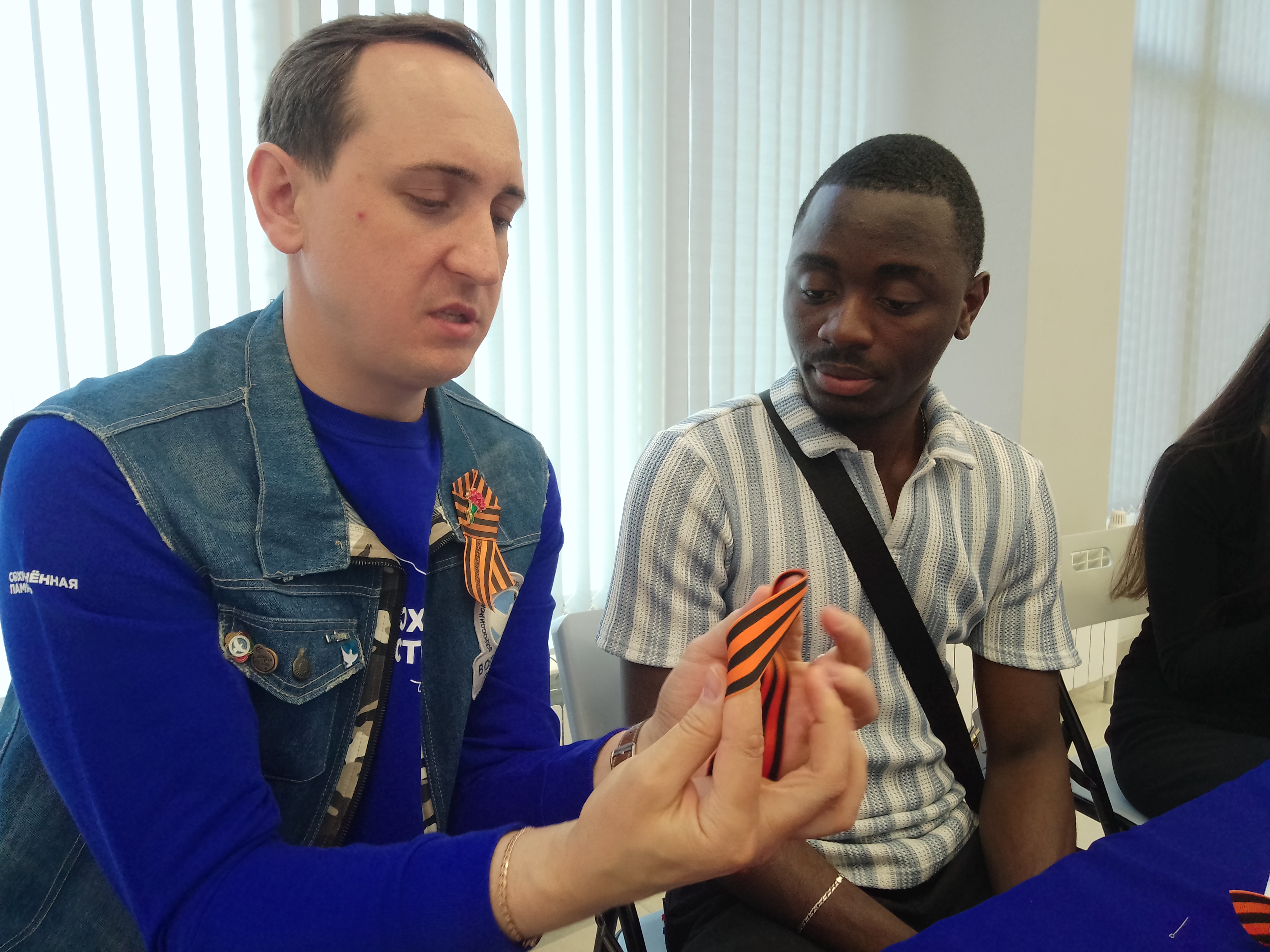 Мероприятие «Память и единство» было завершено мастер-классом по изготовлению броши из Георгиевской ленты, проведённым добровольцами