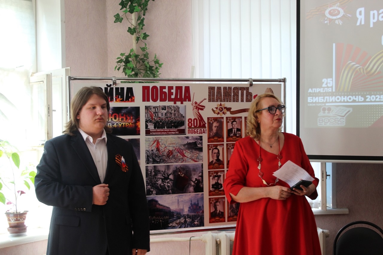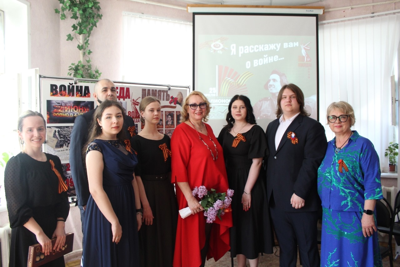 Студенты кафедры вокального искусства (класс профессора, засл. арт. России Ольги Анатольевны Макеевой) Анжелика Кернес, Александр Костин, Екатерина Суровцева и Мария Соловьева с успехом поучаствовали в проекте "Библионочь 2025" Областной библиотеки им. Короленко. Этот проект был посвящён 80-летию Великой Победы.