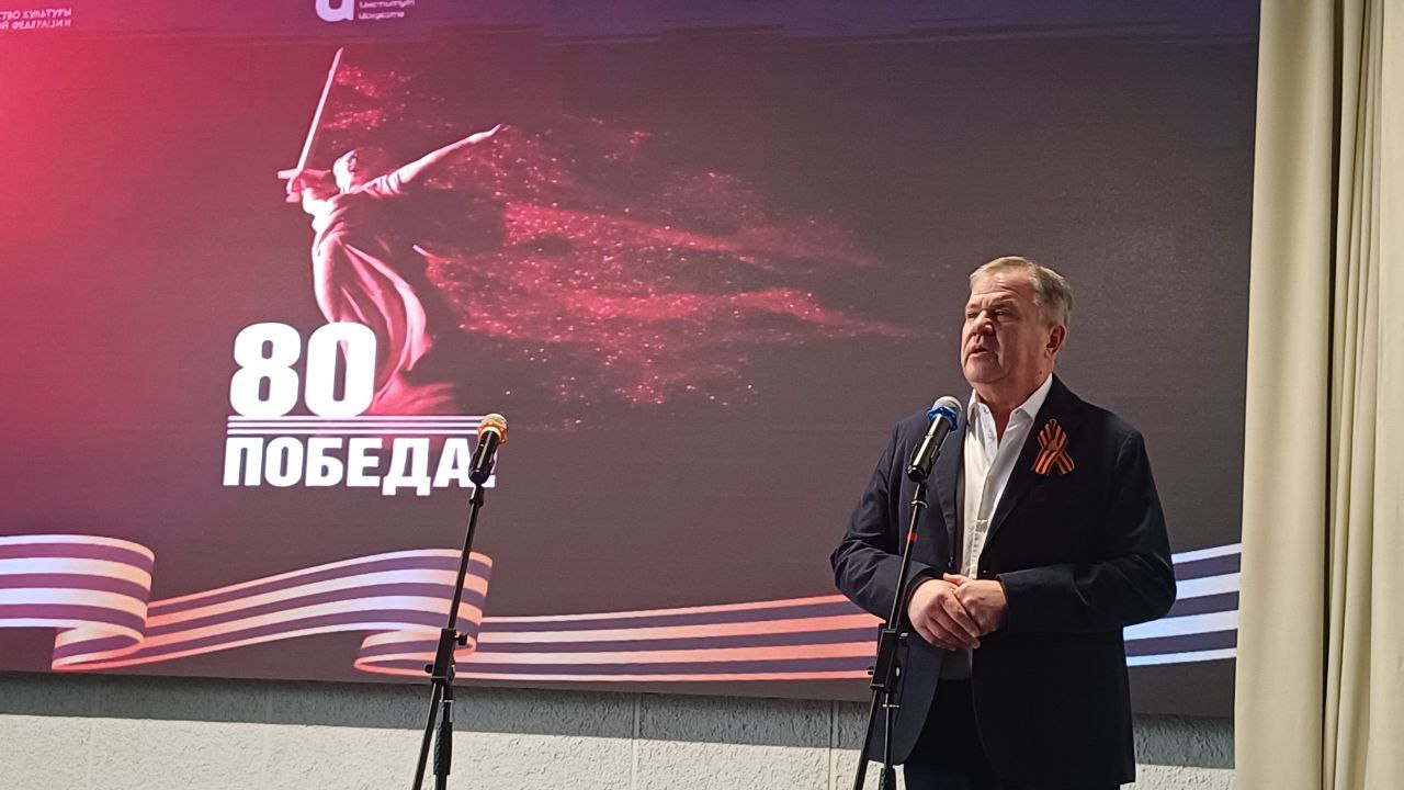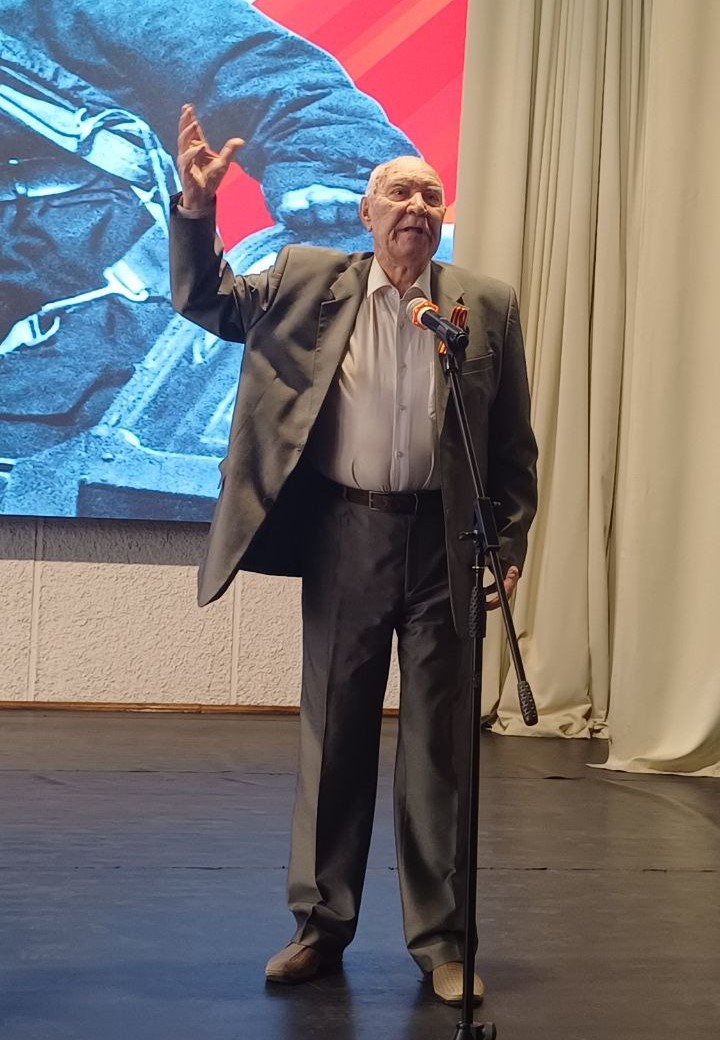 На сцене выступил почетный гость концерта – профессор кафедры мастерства актера, Заслуженный артист Российской Федерации, Почетный наставник Воронежской области Слепых Евгений Фёдорович, который был свидетелем трагедии в Саду Пионеров 13 июня 1942 года.