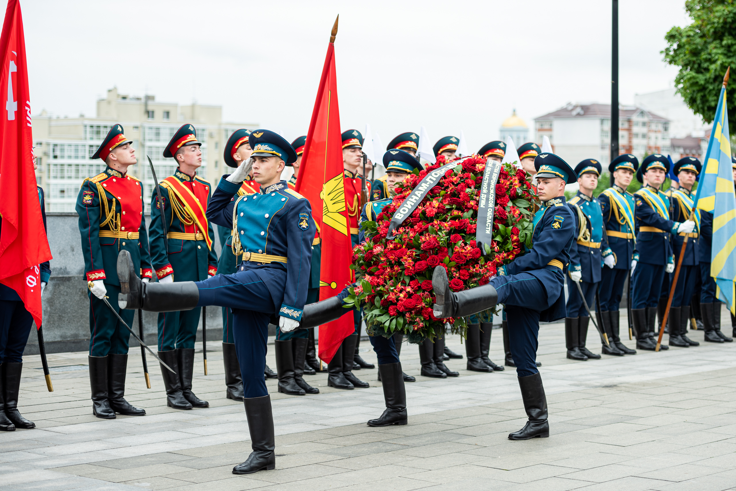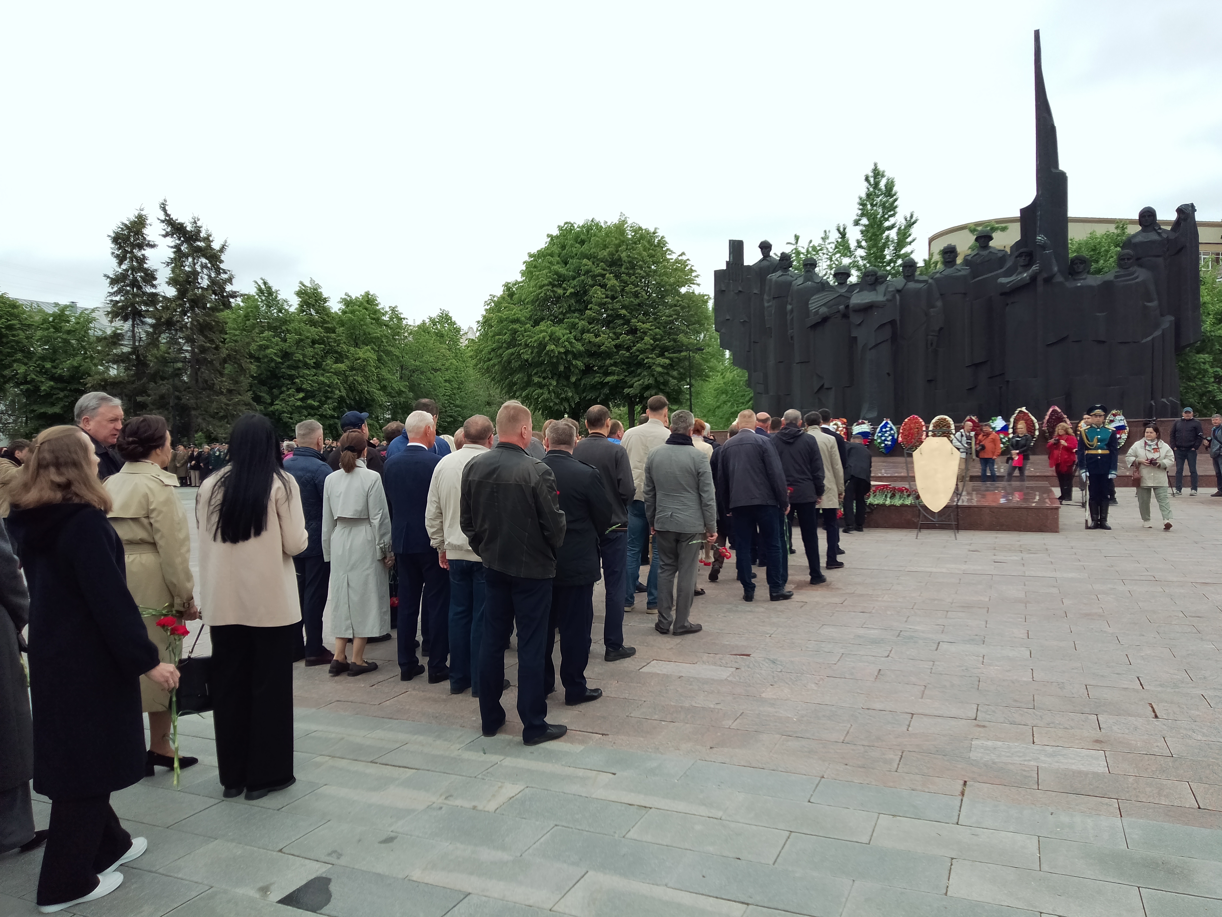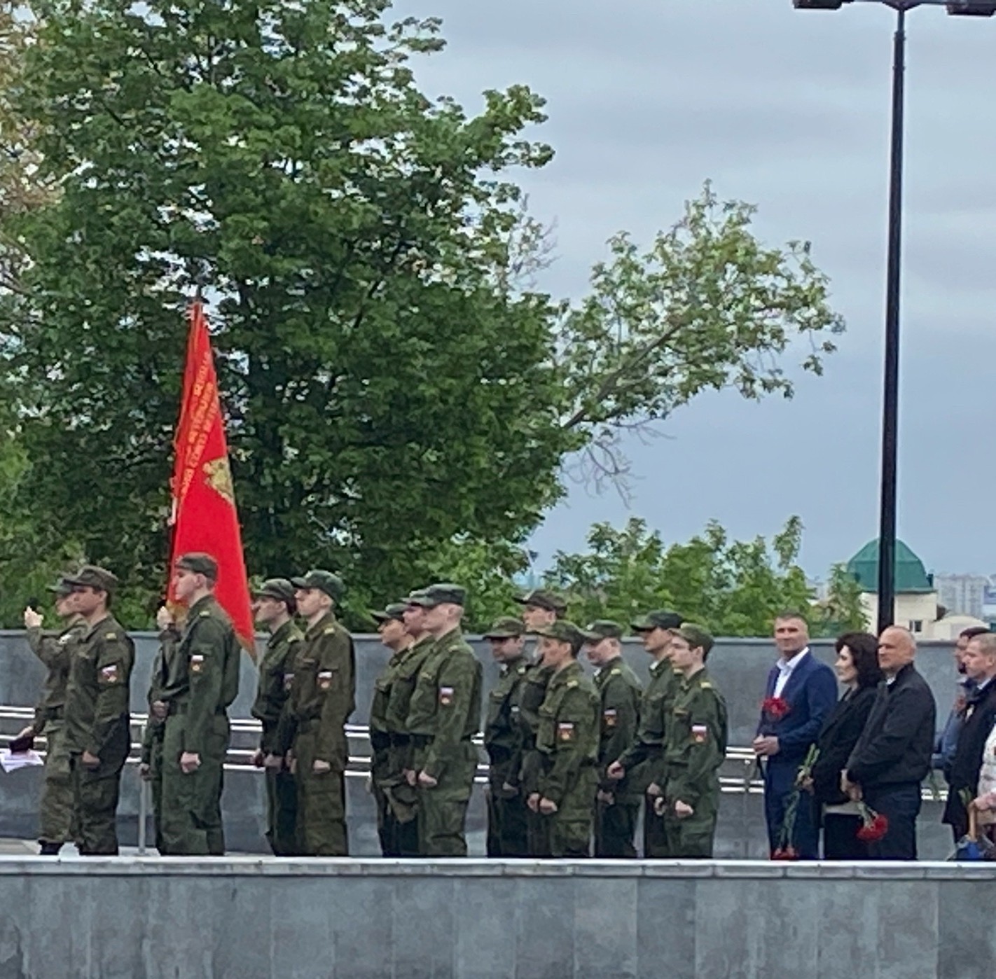 площади Победы. На возложении цветов присутствовали: губернатор Воронежской области А.В. Гусев, вице-губернатор Д.Н. Маслов, представители органов государственной власти, силовых структур, политических партий, волонтерских движений и духовенства. Обучающиеся в средних и высших учебных заведениях г. Воронежа также приняли участие в возложении цветов к Вечному огню. От Воронежского государственного института искусств в колонне Международного клуба дружбы, объединившего иностранных студентов из разных государств, обучающихся в вузах г. Воронежа, присутствовали студент 1 курса отделения «Вокальное