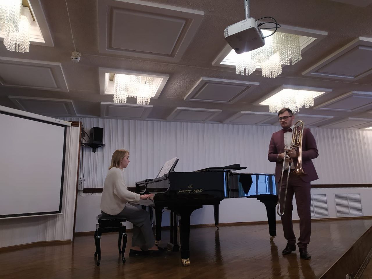 Максим Поляков (тромбон, класс преподавателя С. А. Скоробогатова. Елизавета Чубарова (сопрано, класс профессора М. И. Подкопаева),