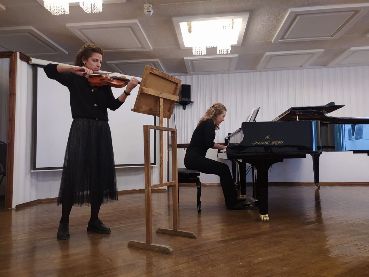 ассистент-стажер Полина Смирнова (скрипка) и Светлана Кузьмина (фортепиано) – класс профессора Е. М. Задонской.