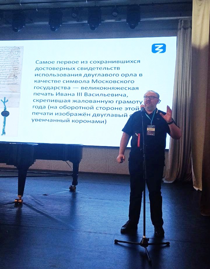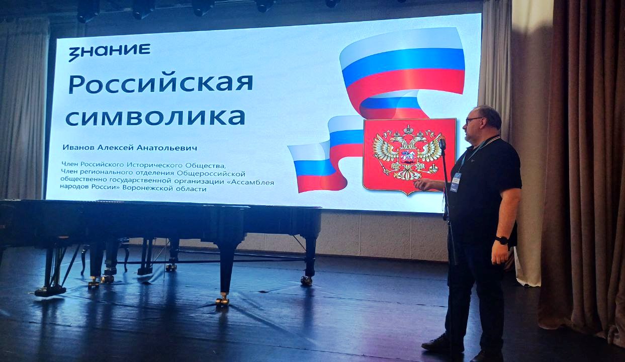 10 июня в Большом зале ВГИИ для студентов и преподавателей института в рамках проекта «100 дат российской идентичности» состоялась лекция на тему «Российская символика», приуроченная к празднику День России. Она была проведена лектором Российского общества «Знание», членом Российского Исторического общества, членом регионального отделения Общероссийской общественно-государственной организации «Ассамблея народов России» Воронежской области, А.А. Ивановым.