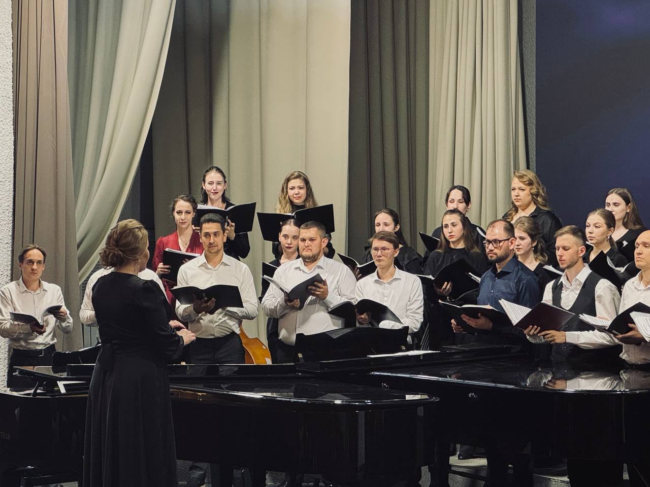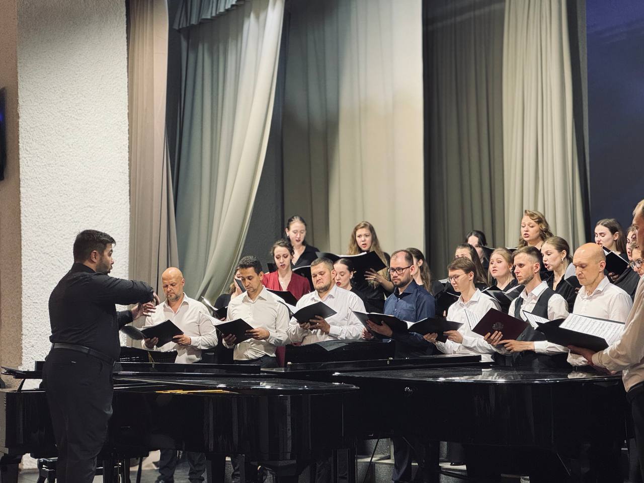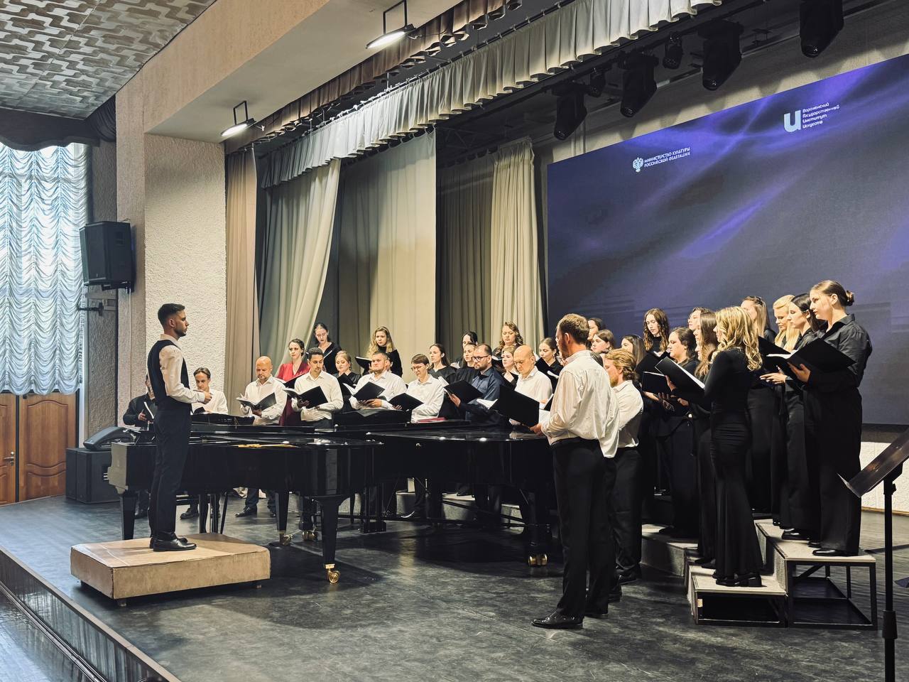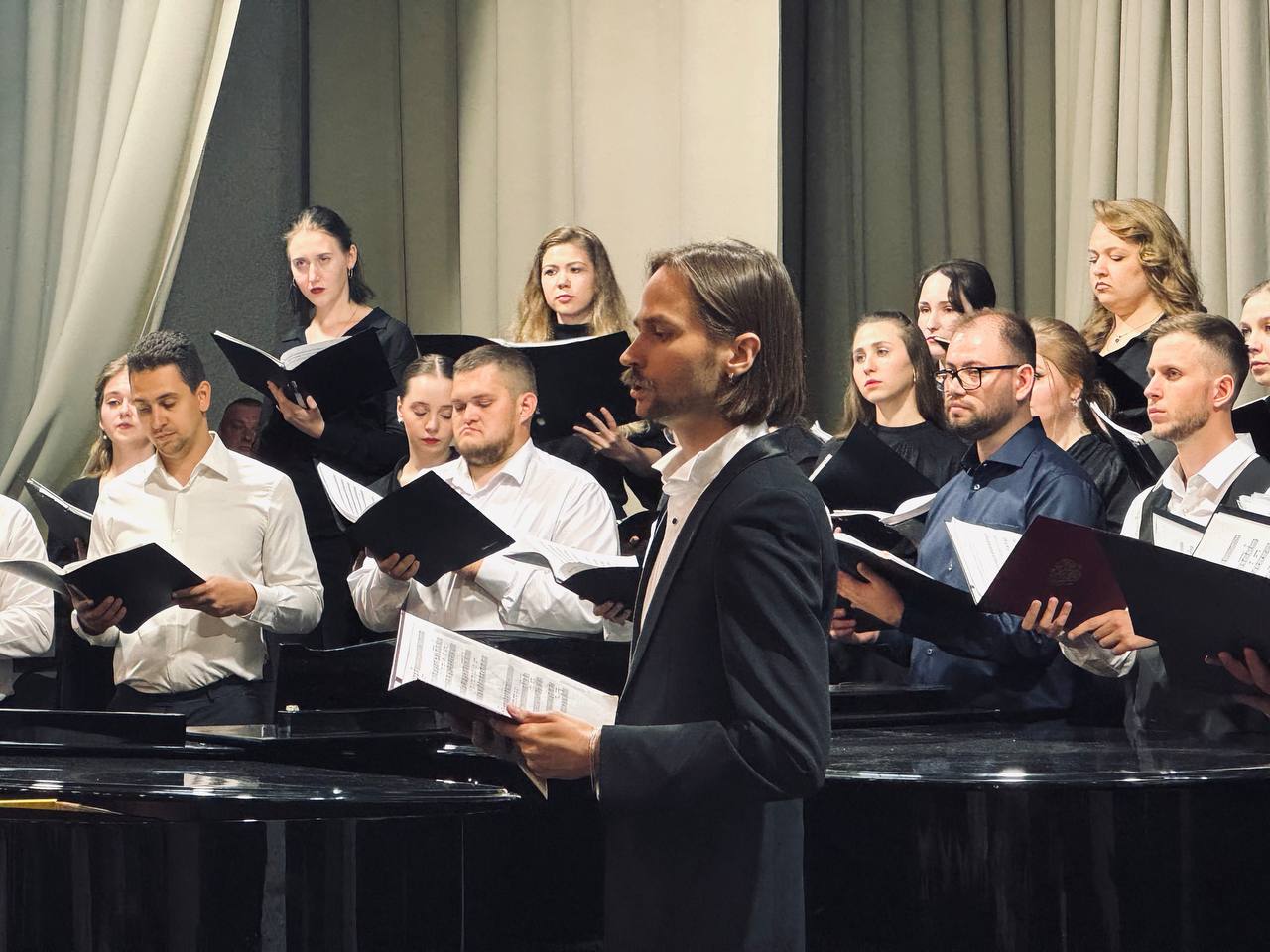 23 июня в Большом зале ВГИИ прошёл государственный экзамен по хоровому дирижированию, который стал важным событием для выпускников - Тамары Жабенец, Алексея Обухова, Анны Юрчак, Ильи Жабенец, Ангелины Поповой, Виталия Свиридова, а также Александр Черничко и Дарья Яковенко. Каждый из них с волнением и радостью готовился к этому моменту, который стал итогом их учебы.