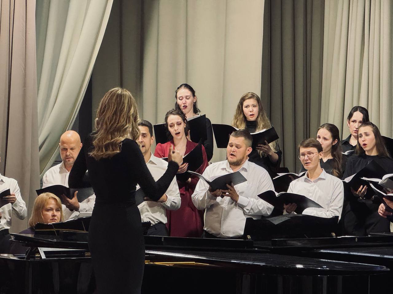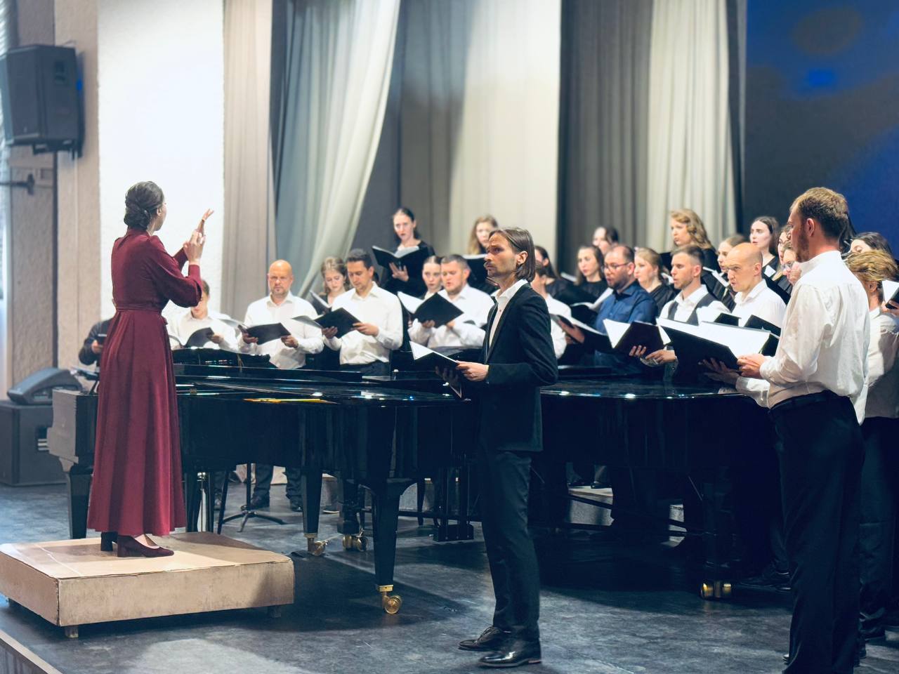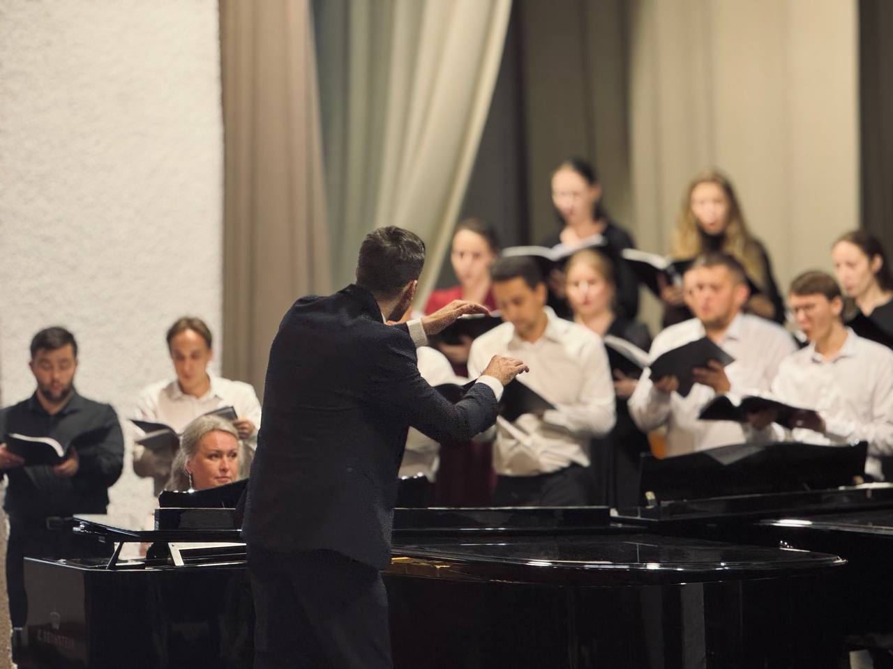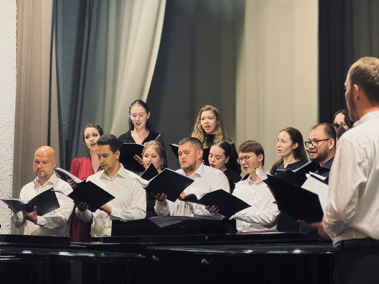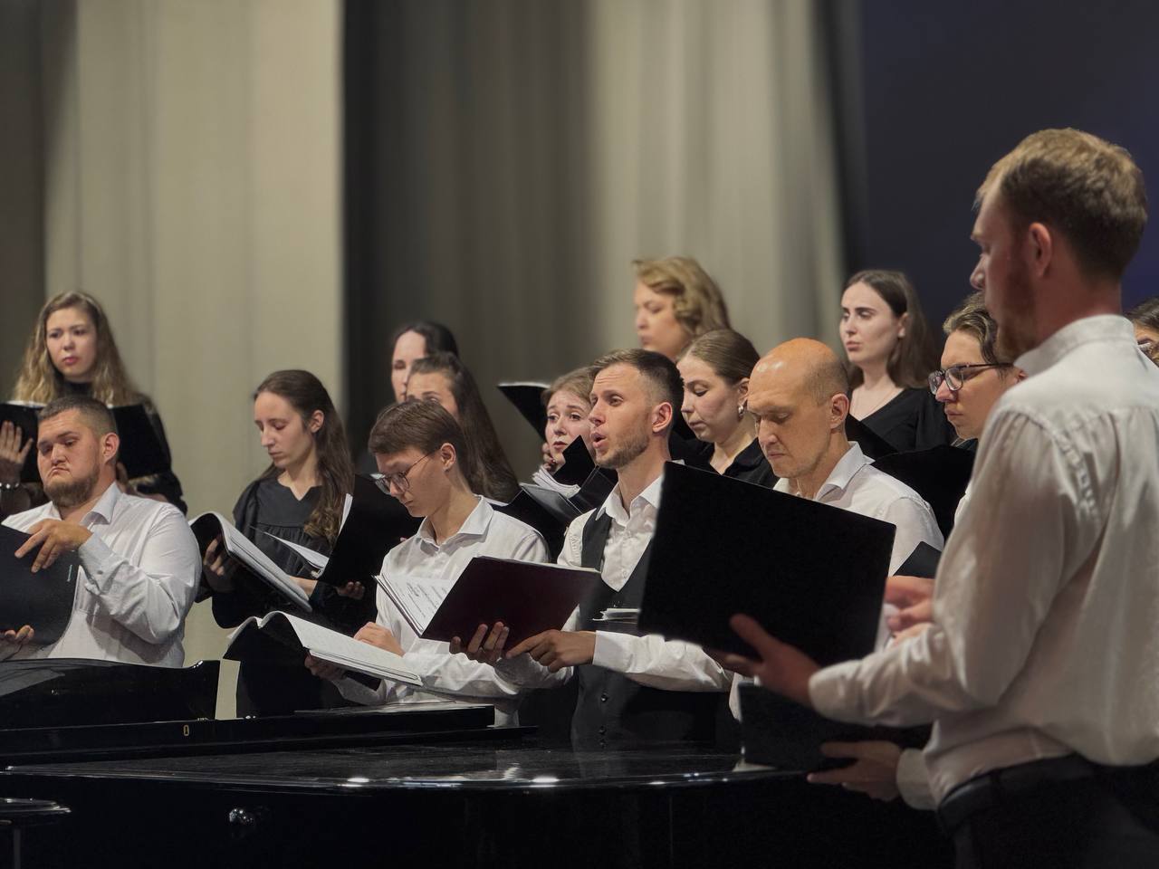 23 июня в Большом зале ВГИИ прошёл государственный экзамен по хоровому дирижированию, который стал важным событием для выпускников - Тамары Жабенец, Алексея Обухова, Анны Юрчак, Ильи Жабенец, Ангелины Поповой, Виталия Свиридова, а также Александр Черничко и Дарья Яковенко. Каждый из них с волнением и радостью готовился к этому моменту, который стал итогом их учебы.