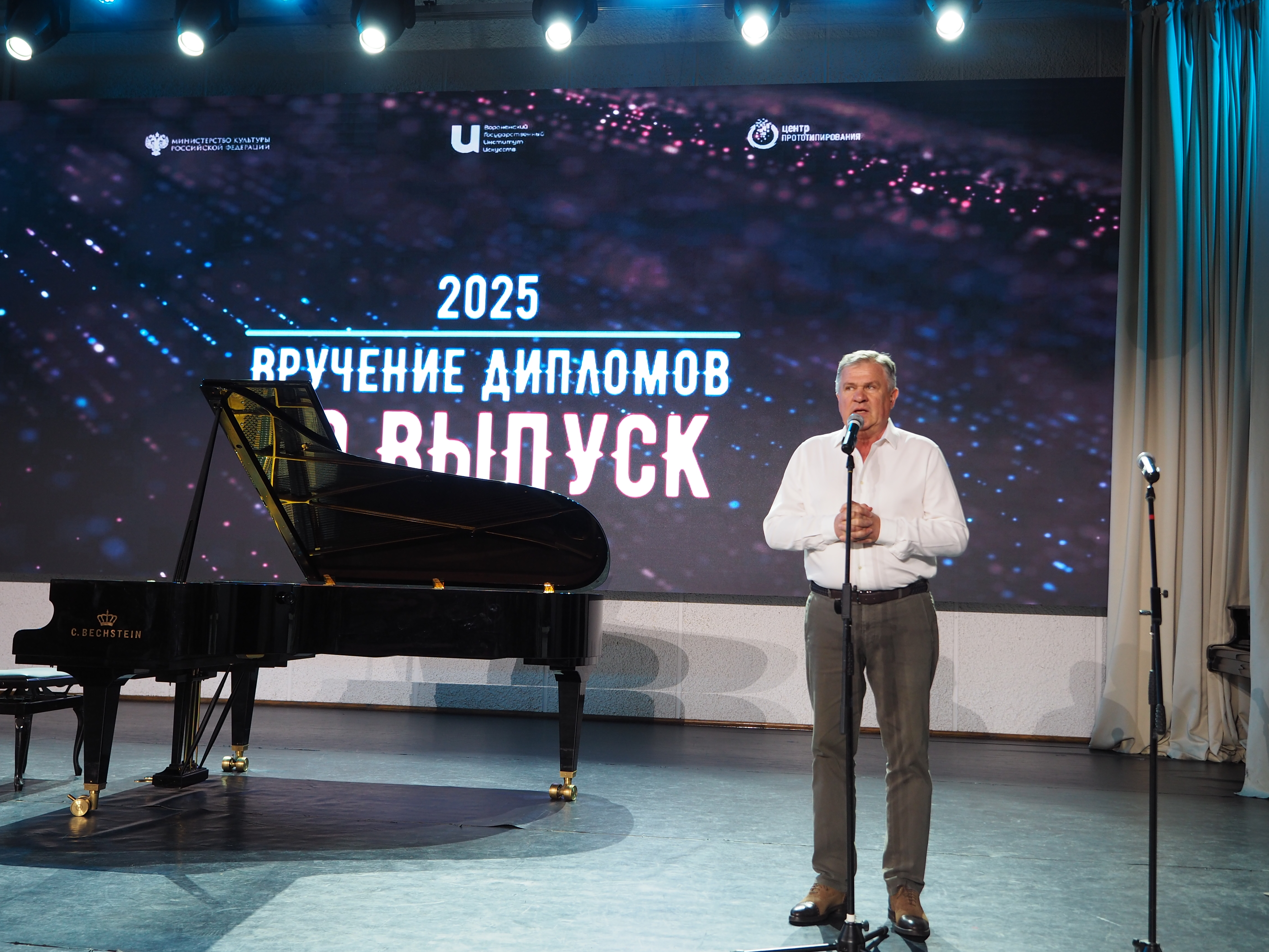 В Воронежском государственном институте искусств состоялось торжественное вручение дипломов, приуроченное к 50-му выпуску. В этом году дипломы получили более 70 студентов, обучавшихся на трёх факультетах: музыкально-театральном, живописи, а также ассистентуре-стажировке и дополнительном образовании. Среди выпускников 23 человека удостоены красных дипломов, что свидетельствует о высоком уровне их подготовки.
