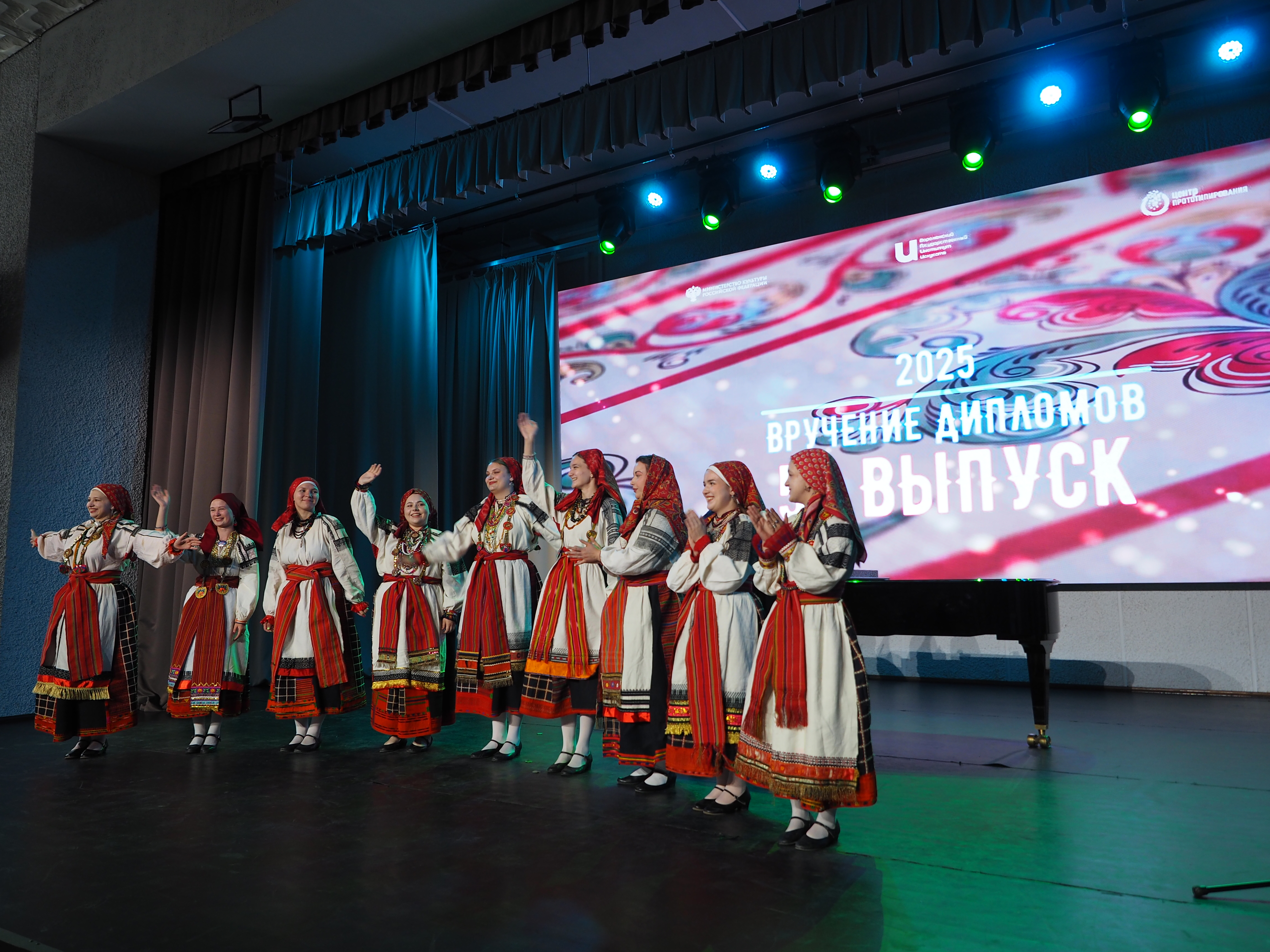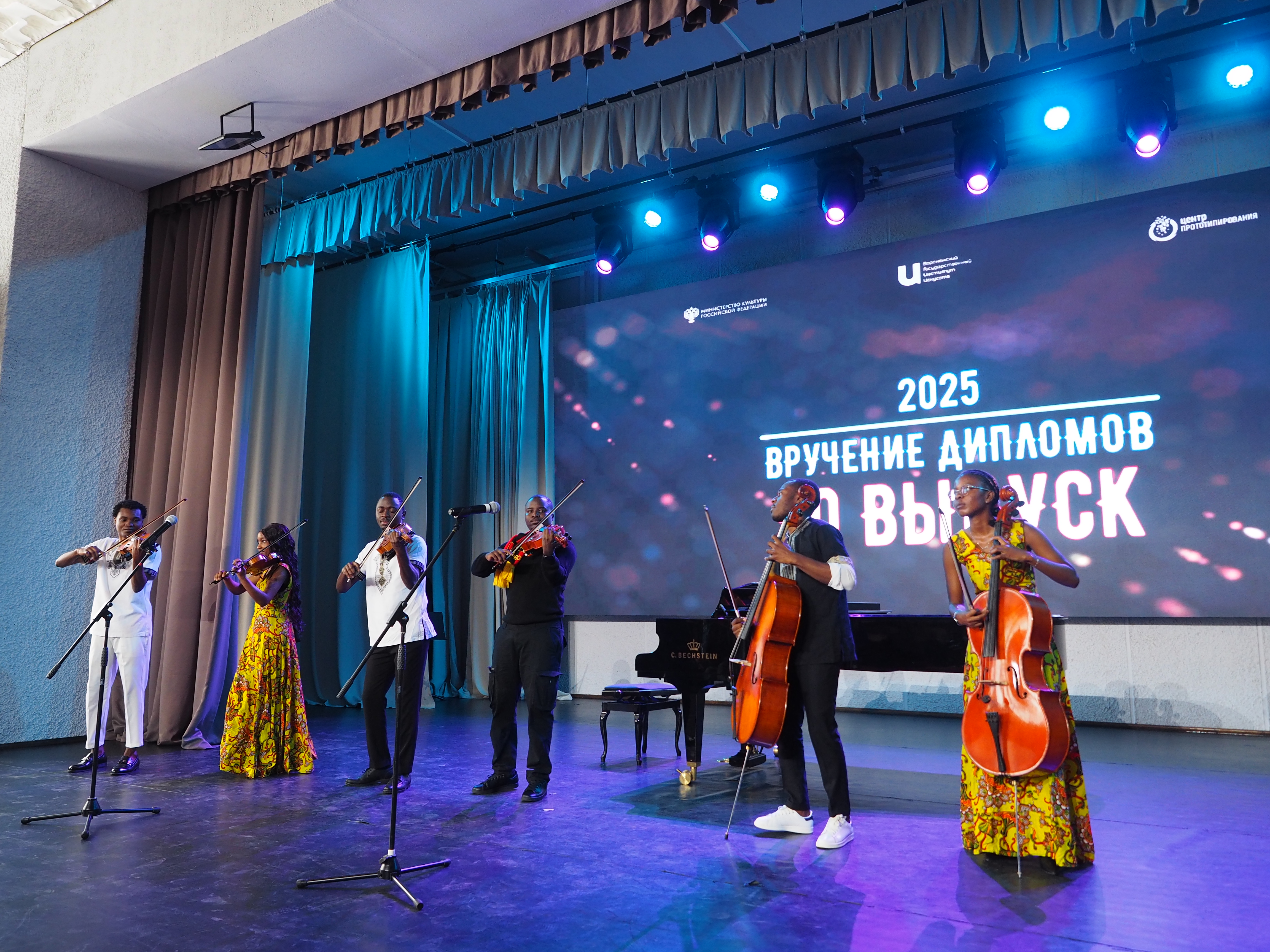 Традиционно на мероприятии прозвучали гимн России и "Гаудеамус", что добавило торжественности и патриотизма в атмосферу праздника. В программе также были представлены поздравительные номера от студентов музыкального и театрального факультетов. В качестве памятного жеста студенты факультета живописи создали портреты для выпускников из Анголы и Китая, чтобы оставить им приятные воспоминания об обучении в вузе.