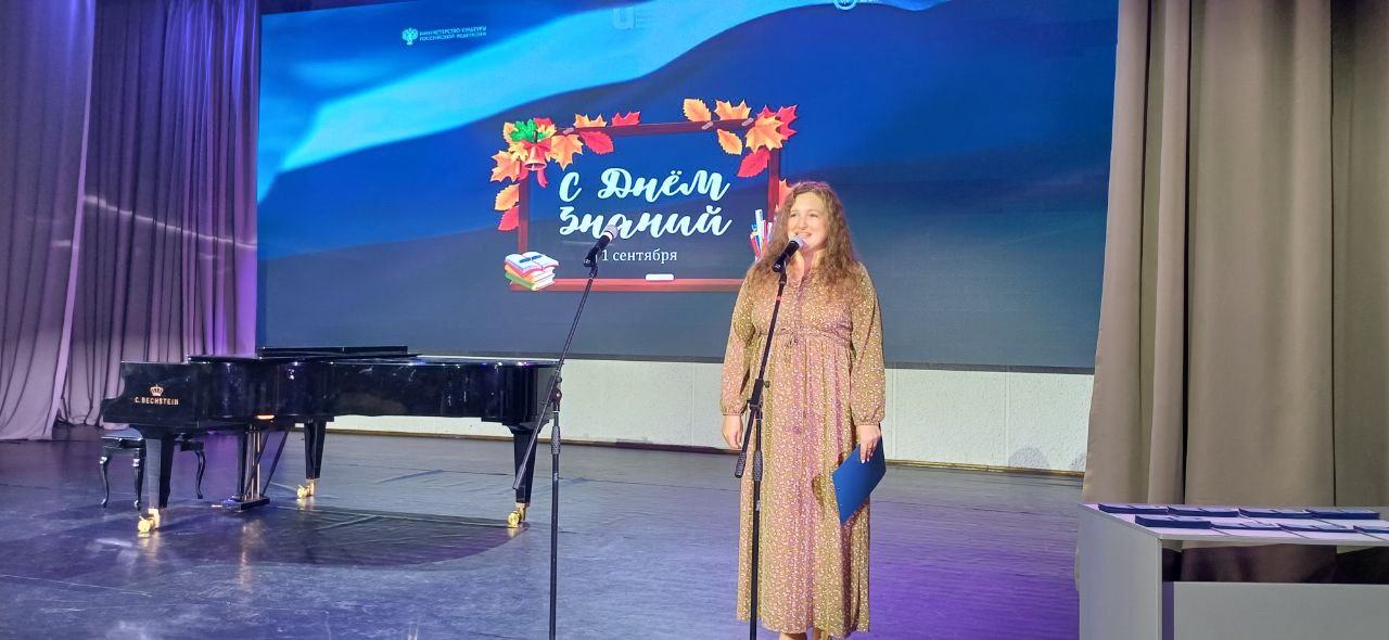 Проректор по учебно-воспитательной работе Галина Павловна Христова поздравила всех с праздником и напомнила, что после торжества студентов ждут первые занятия.