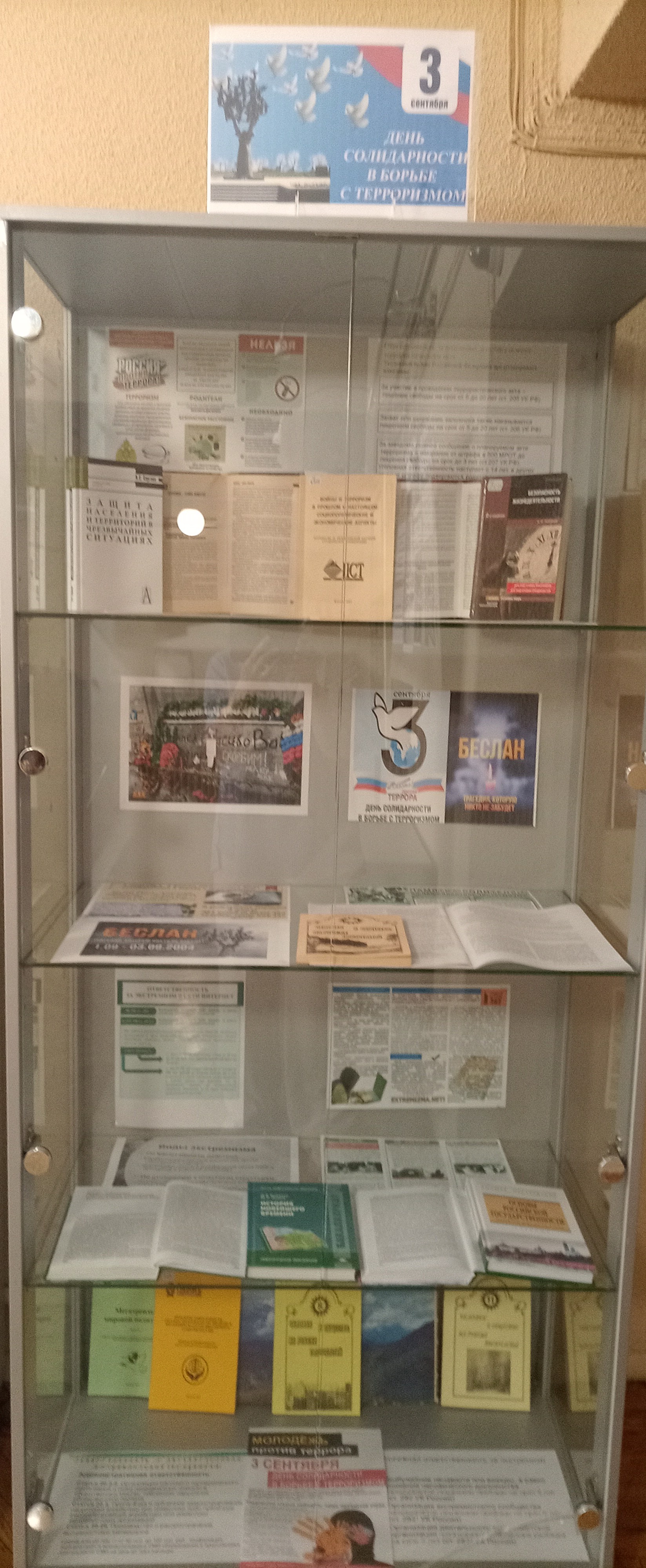 Библиотека института искусств подготовила иллюстративно-книжную выставку, рассказывающую о том, какую угрозу несёт терроризм миру в целом, а также каждому конкретному человеку, который может стать жертвой террористической деятельности. Выставка расположена в фойе Большого зала на первом этаже учебного корпуса ВГИИ.