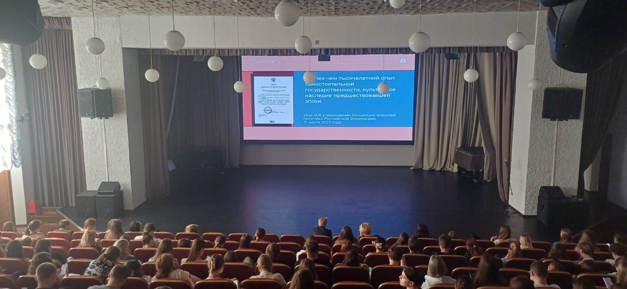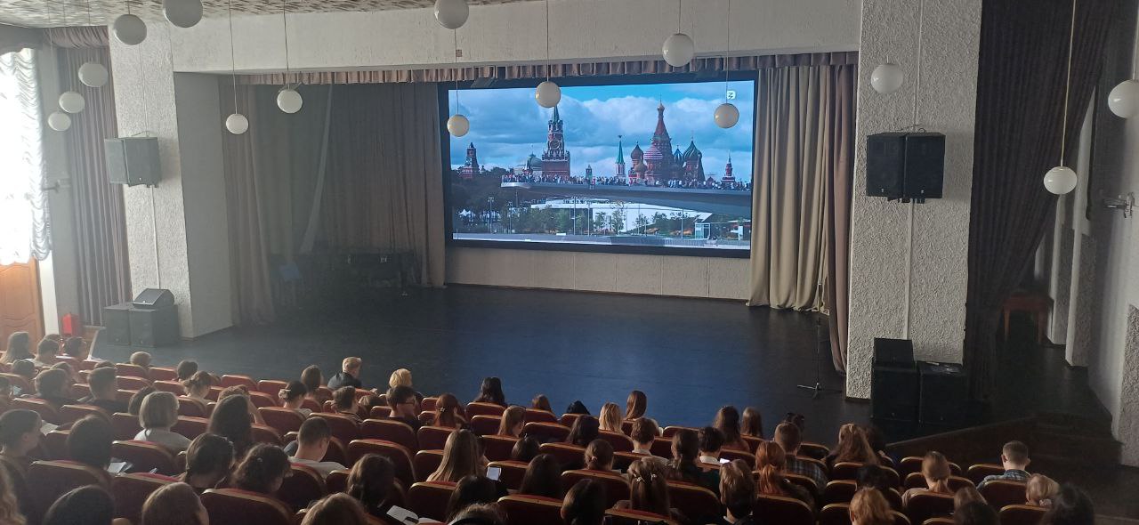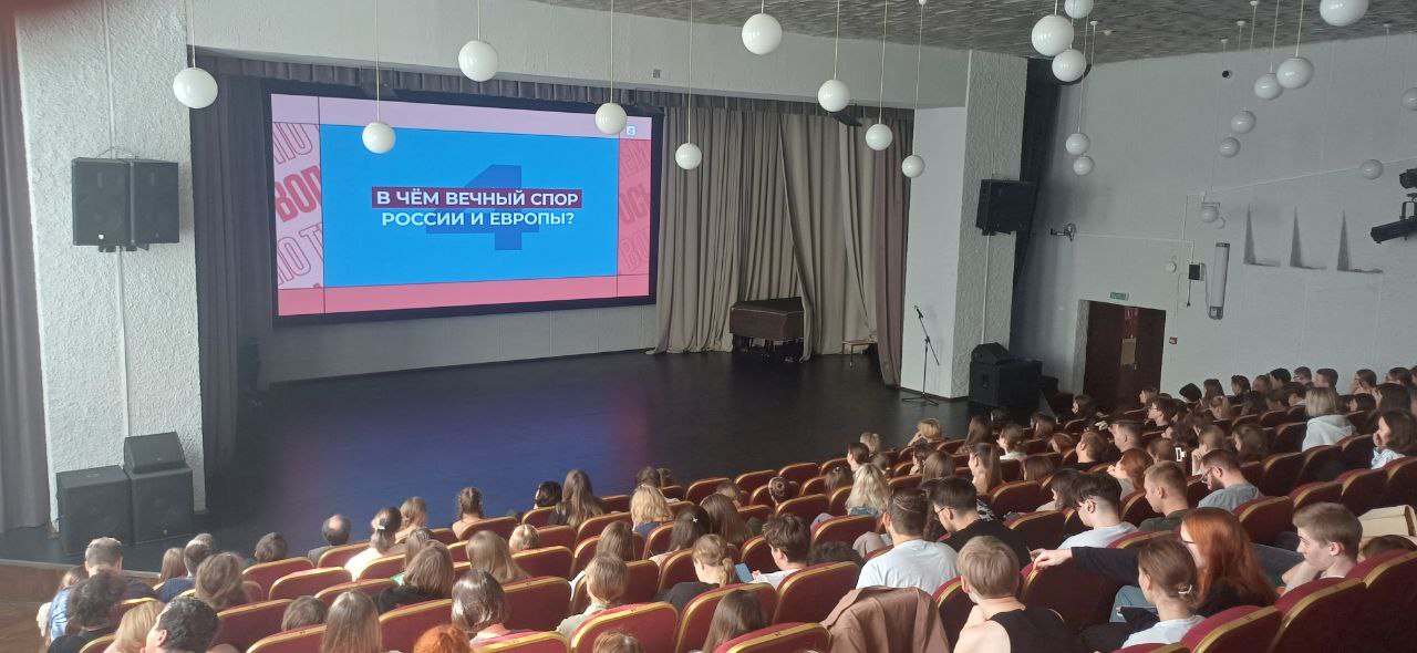 23 сентября в Большом зале ВГИИ для студентов и преподавателей института в рамках Киноклуба ВГИИ, при поддержке Российского общества «Знание» состоялся показ документального фильма «ДНК России. Государство-цивилизация», приуроченного ко Дню зарождения российской государственности, отмечавшегося 21 сентября.