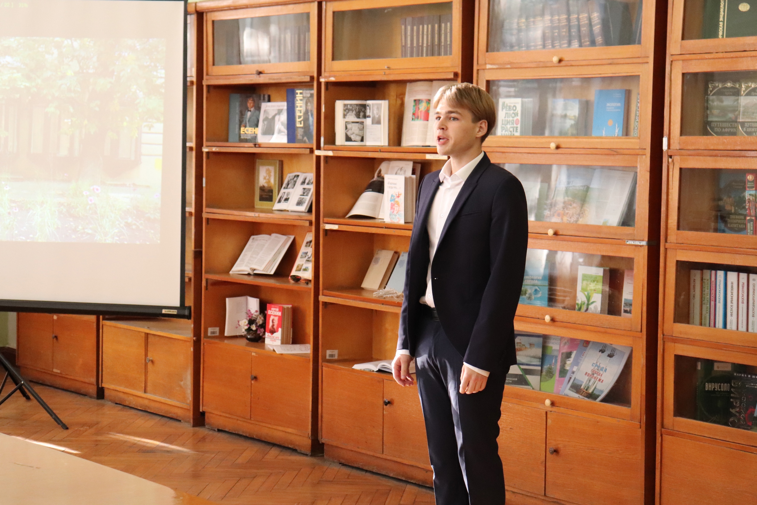 30 сентября в Никитинской библиотеке состоялась лекция, посвященная 130-летию со дня рождения Сергея Есенина. В рамках этого события с поэтической программой выступили студенты 4 курса театрального факультета Воронежского государственного института искусств Артём Матвеев и Артём Кобзев. Благодаря своему таланту и личной увлеченности творчеством поэта, они погрузили зрителей в атмосферу есенинского лиризма. Их выступление живым поэтическим словом стало ярким эмоциональным прологом к лекции и настроило аудиторию на глубокое восприятие наследия великого русского поэта.