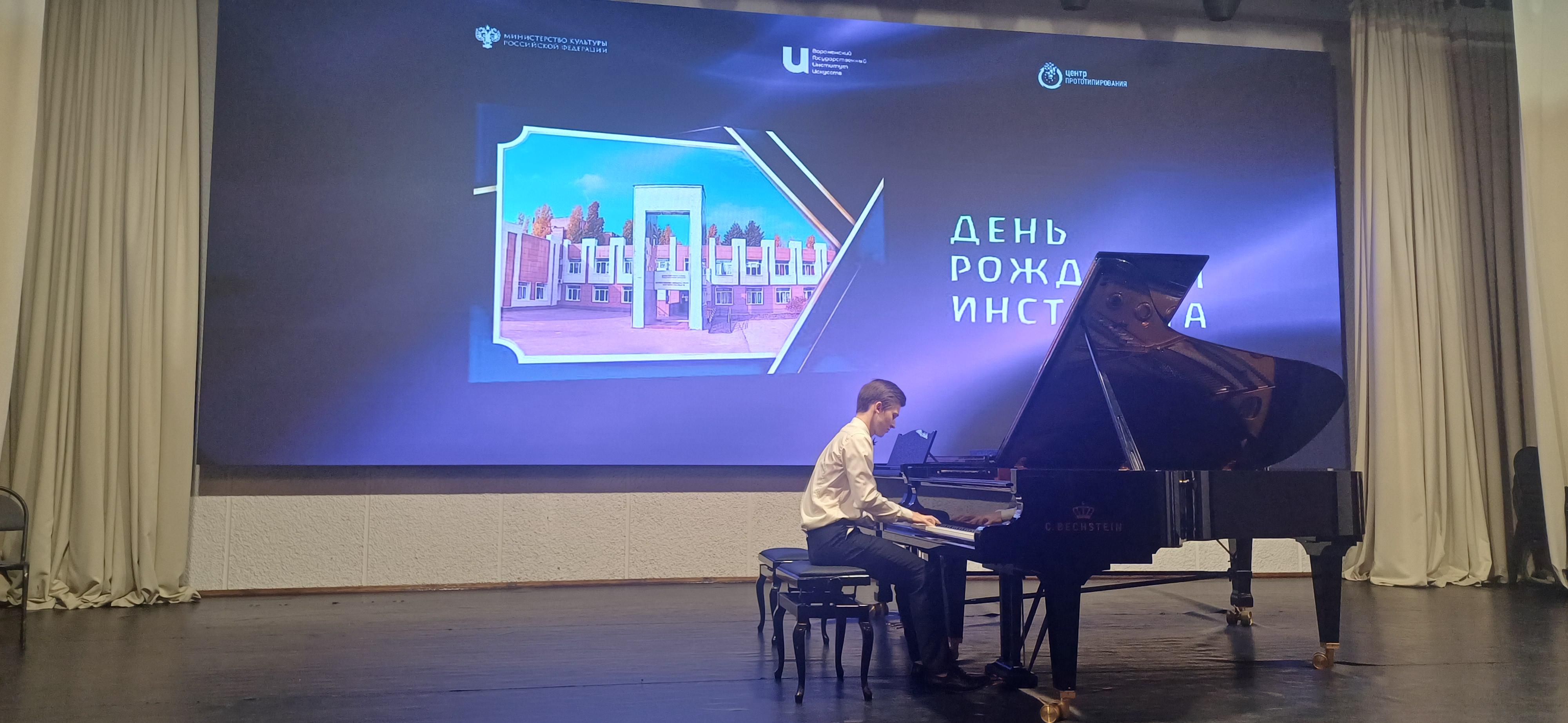 В Большом зале Воронежского государственного института искусств состоялся праздничный концерт, посвященный Дню рождения института. В нем выступили с концертными номерами студенты, ассистенты-стажеры и преподаватели кафедр специального фортепиано, оркестровых инструментов, вокального искусства, оркестровых народных инструментов, хорового дирижирования, этномузыкологии. В концерте приняли участие коллективы института: ансамбль «Домра Нова», камерный хор ВГИИ и смешанный хор кафедры хорового дирижирования, который исполнил «Песню о ВГИИ», посвященную любимому институту (автор музыки и слов — профессор, доктор искусствоведения Владислав Девуцкий). В конце был показан поздравительный видеоролик, записанный студентами разных факультетов, в котором они делились впечатлениями об институте искусств, благодарили своих педагогов, а студент кафедры этномузыкологии даже прочел свое стихотворение, посвященное институту! Этот замечательный концерт позволил поделиться радостью творчества друг с другом, а также с нашими гостями, приглашенными через Комитет семей и воинов Отечества, с которым институт искусств регулярно поддерживает связь.