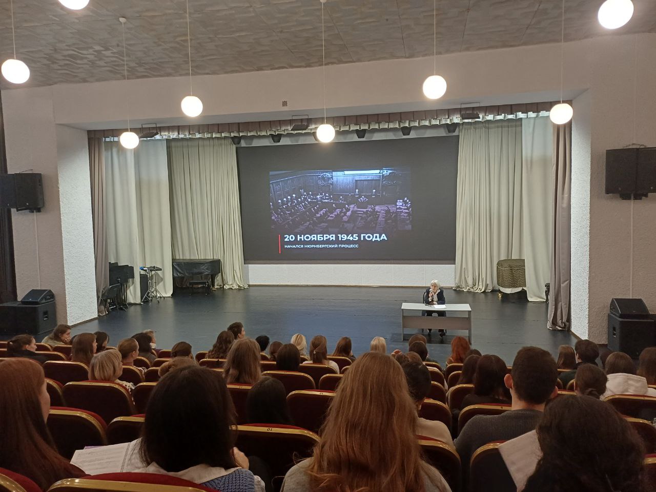 18 ноября в Воронежском государственном институте искусств в рамках проекта «100 дат российской идентичности» прошла просветительская лекция, посвященная 80-летию со дня начала Нюрнбергского процесса.