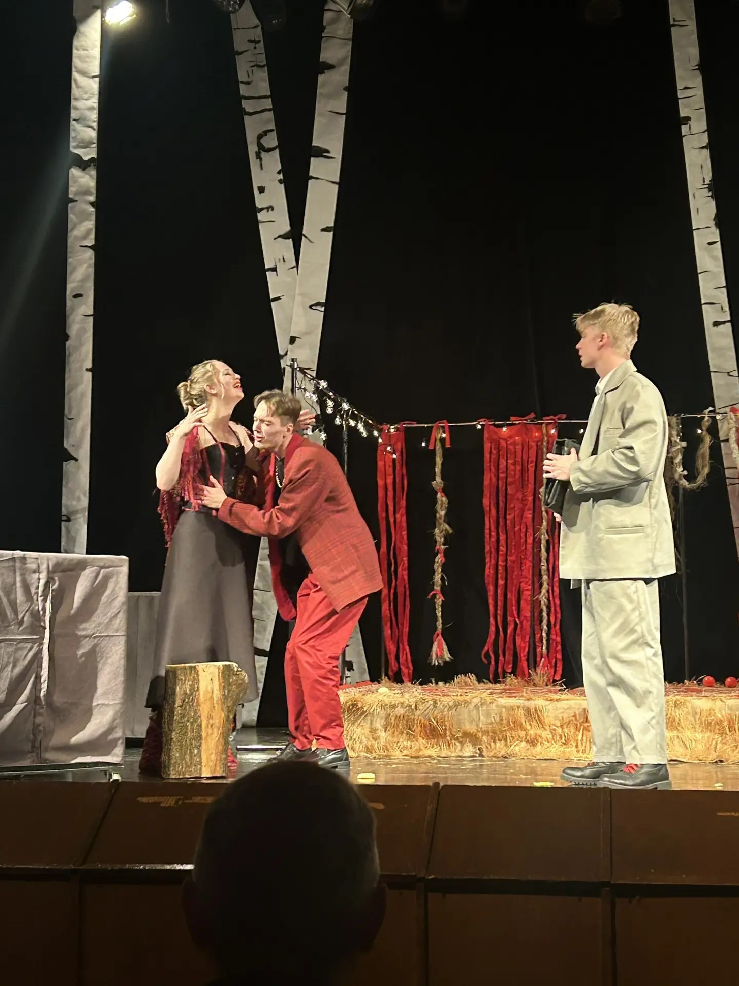 Живая музыка, колоритные декорации, яркие костюмы, песни и танцы создали на сцене настоящий праздник Театра, который никого не оставит равнодушным! Художественный руководитель курса Ирина Борисовна Сисикина. Режиссер - Виктория Шаламова, хореограф- Мария Фролова, художник-Анастасия Зинченко. Поздравляем студентов с премьерой и желаем новых творческих побед.